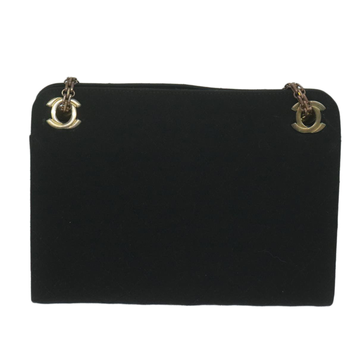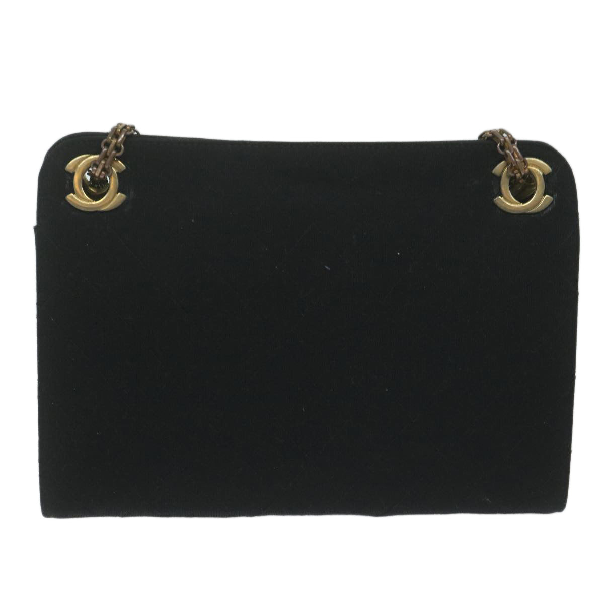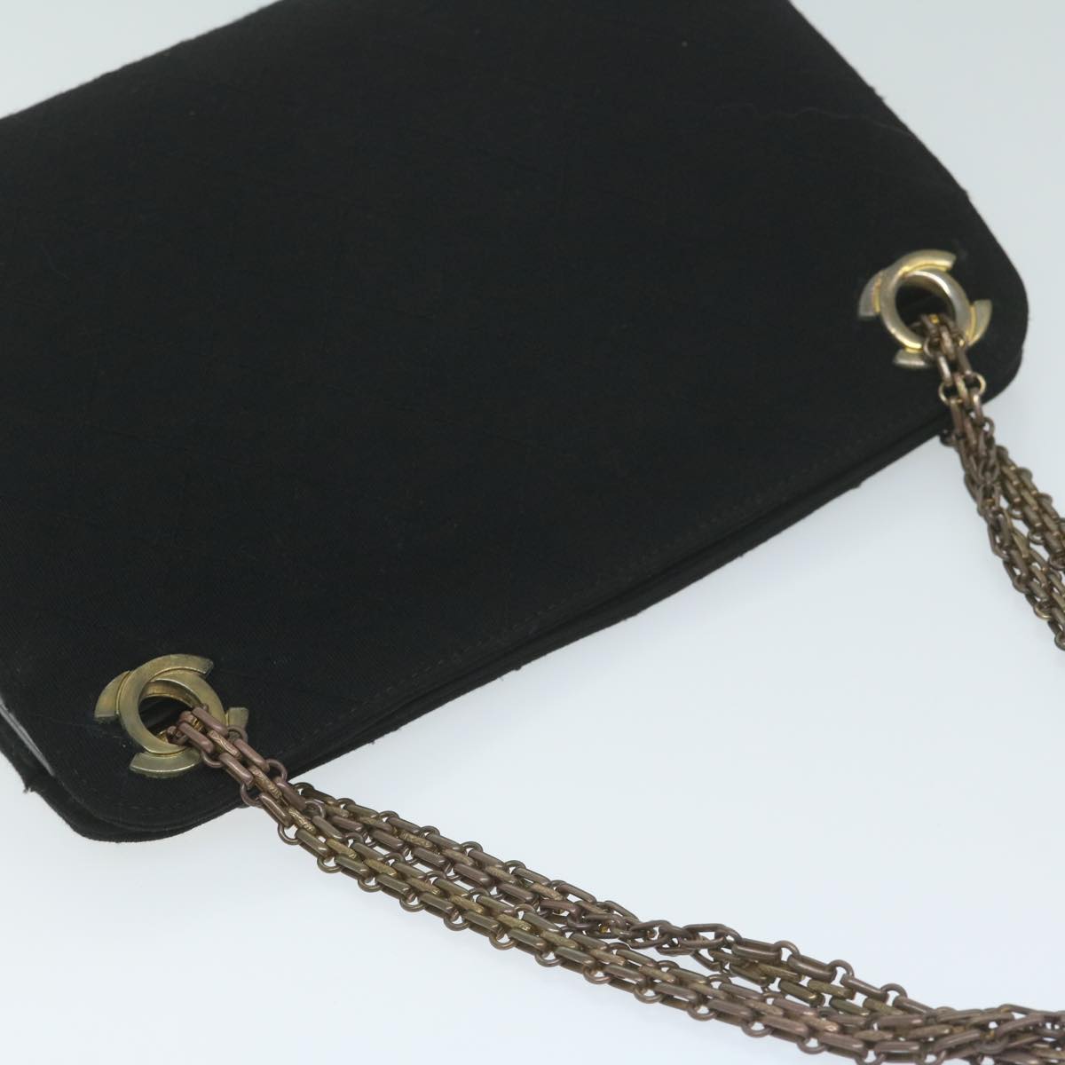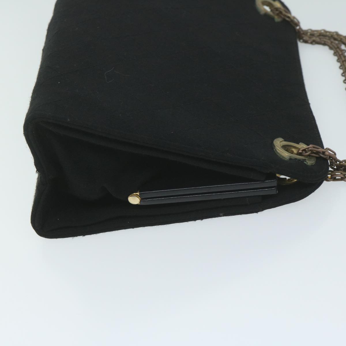 CHANEL Chain Shoulder Bag Cotton Black CC Auth bs11474