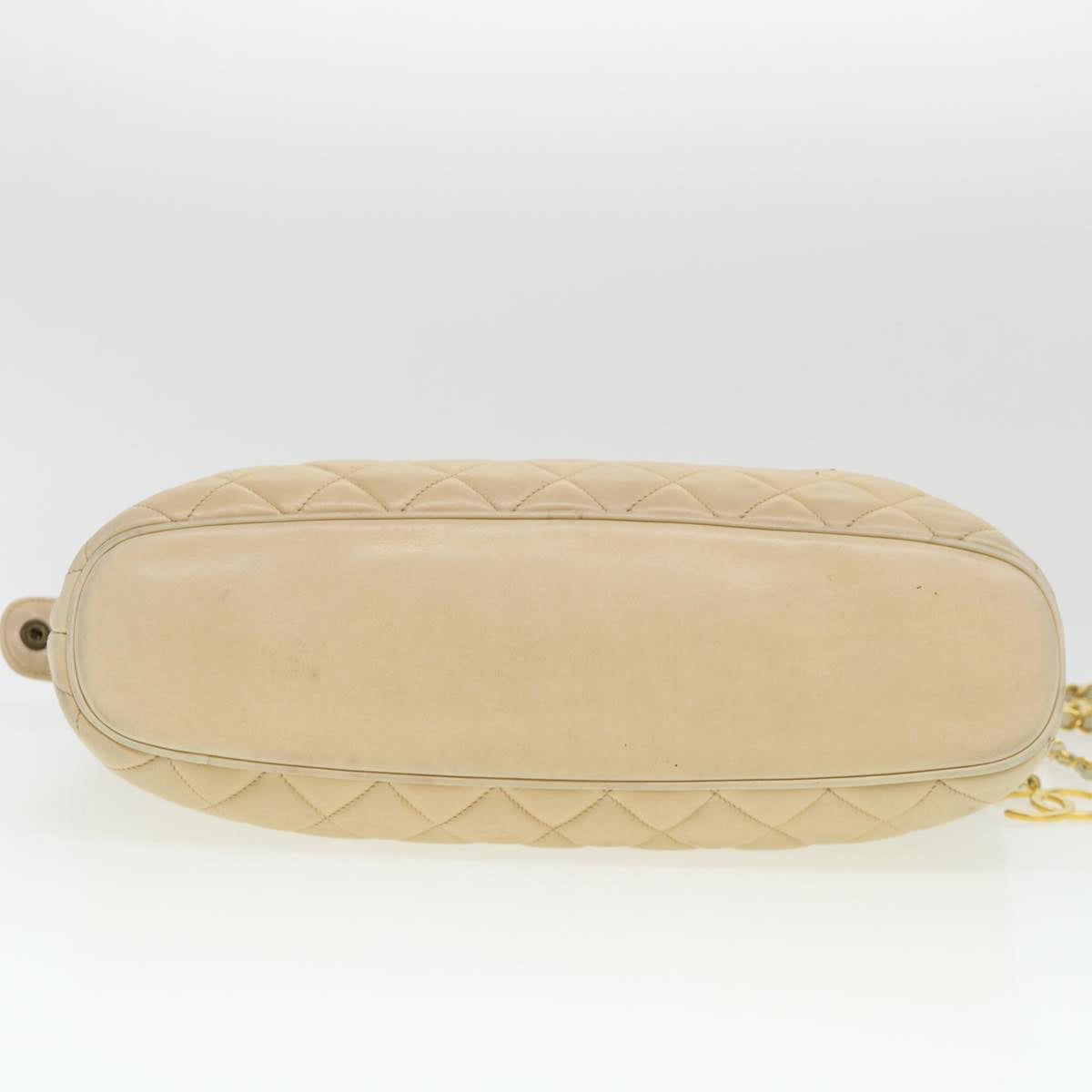 Chanel Chain Shoulder Bag Lamb Skin Beige CC Auth 38451