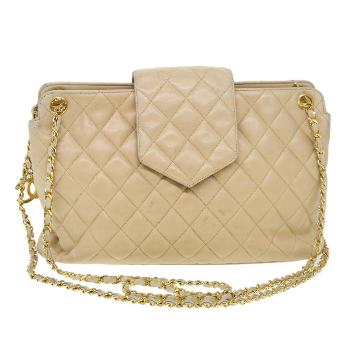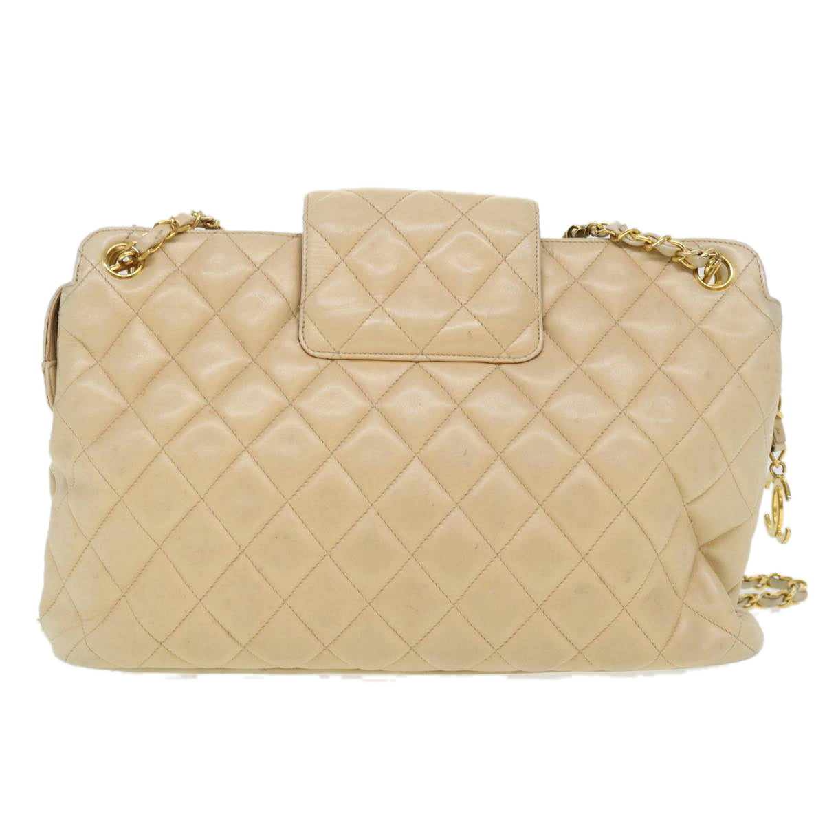 Chanel Chain Shoulder Bag Lamb Skin Beige CC 38451
