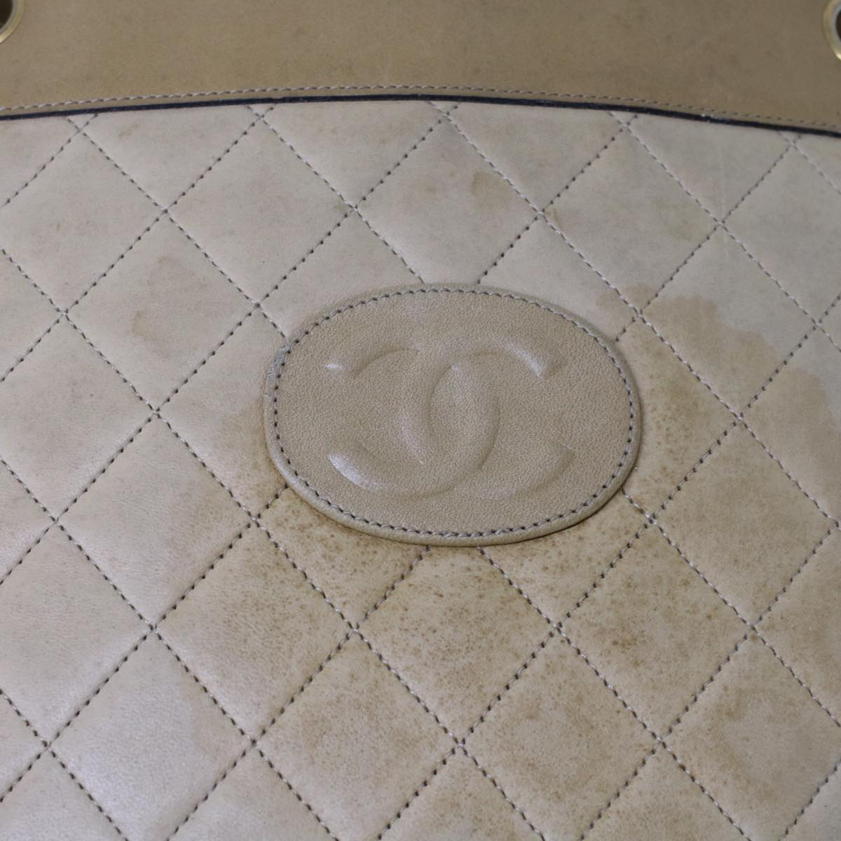 Chanel Chain Shoulder Bag Lamb Skin Beige CC Auth bs6968