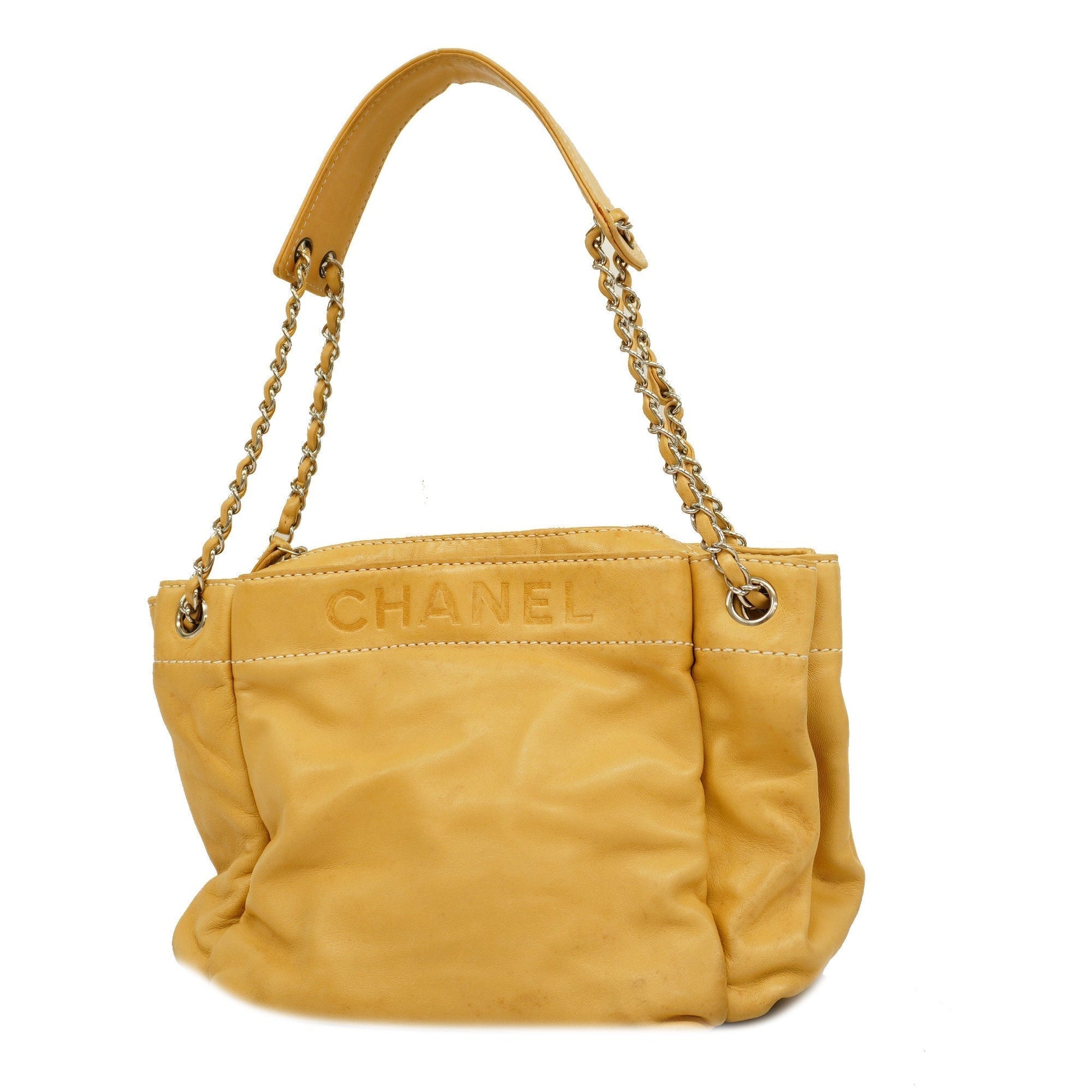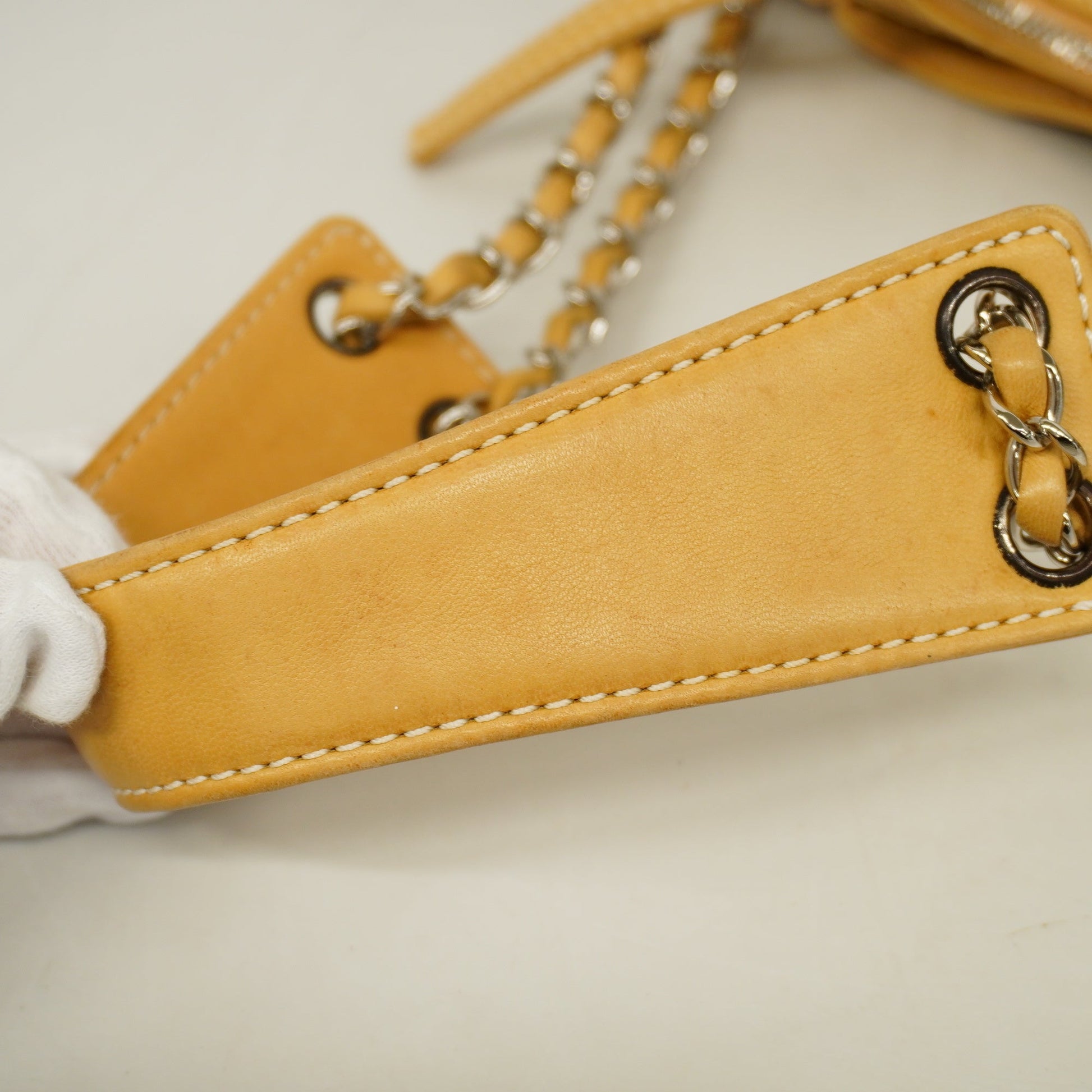 CHANEL Chain Shoulder Women's Leather Shoulder Bag Beige