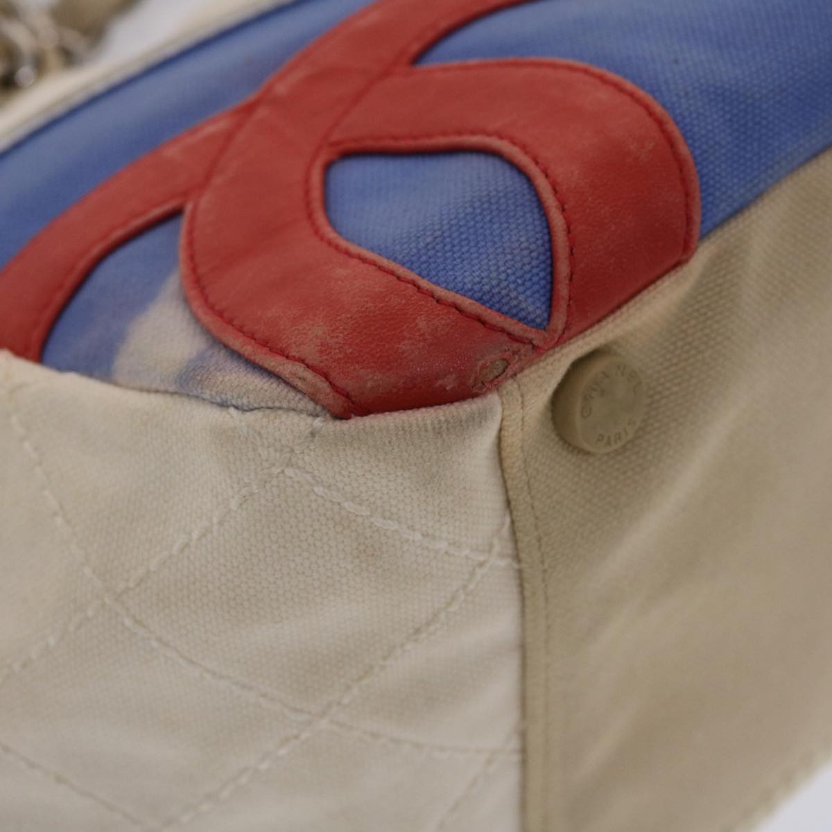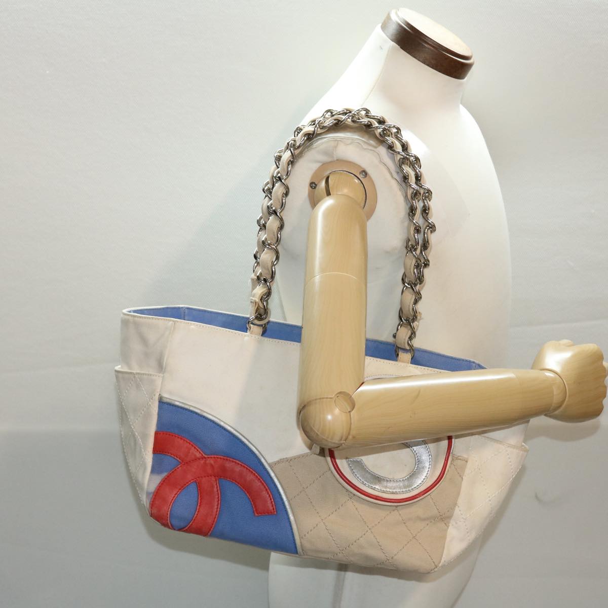 Chanel Chain Tote Bag No5 Canvas White CC Auth 49901