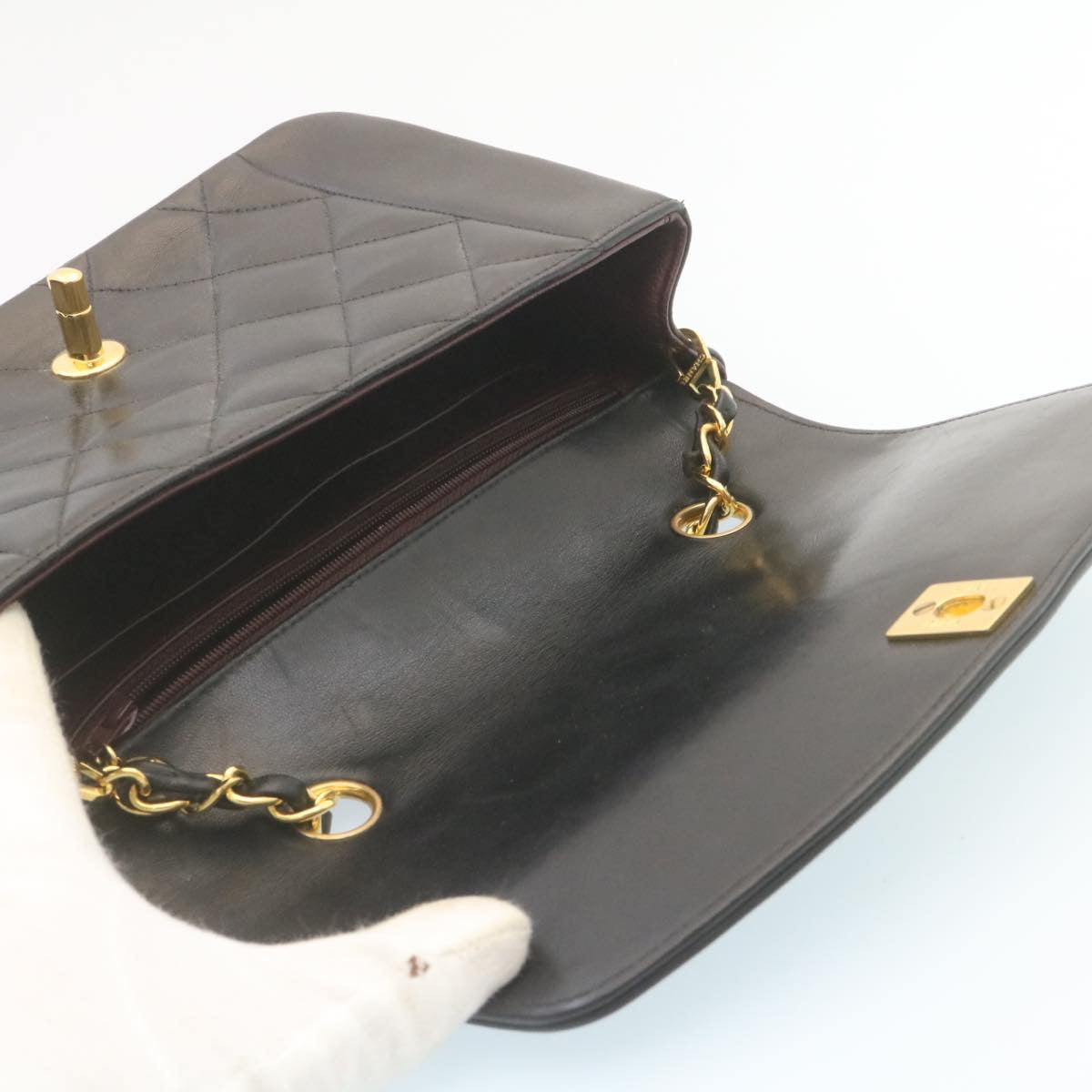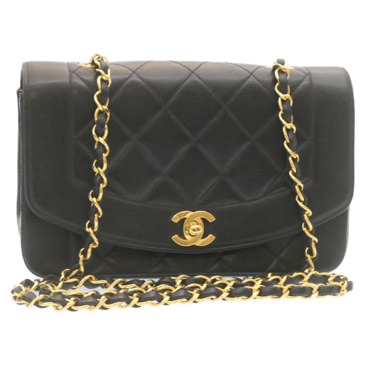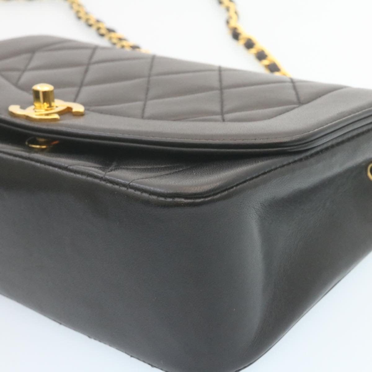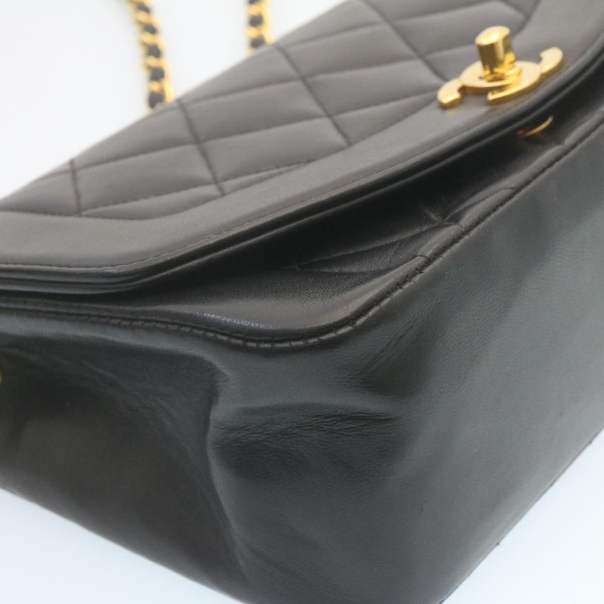 Chanel Chain Turn Lock Diana Matelasse Shoulder Bag Lamb Skin Black Auth 28643A