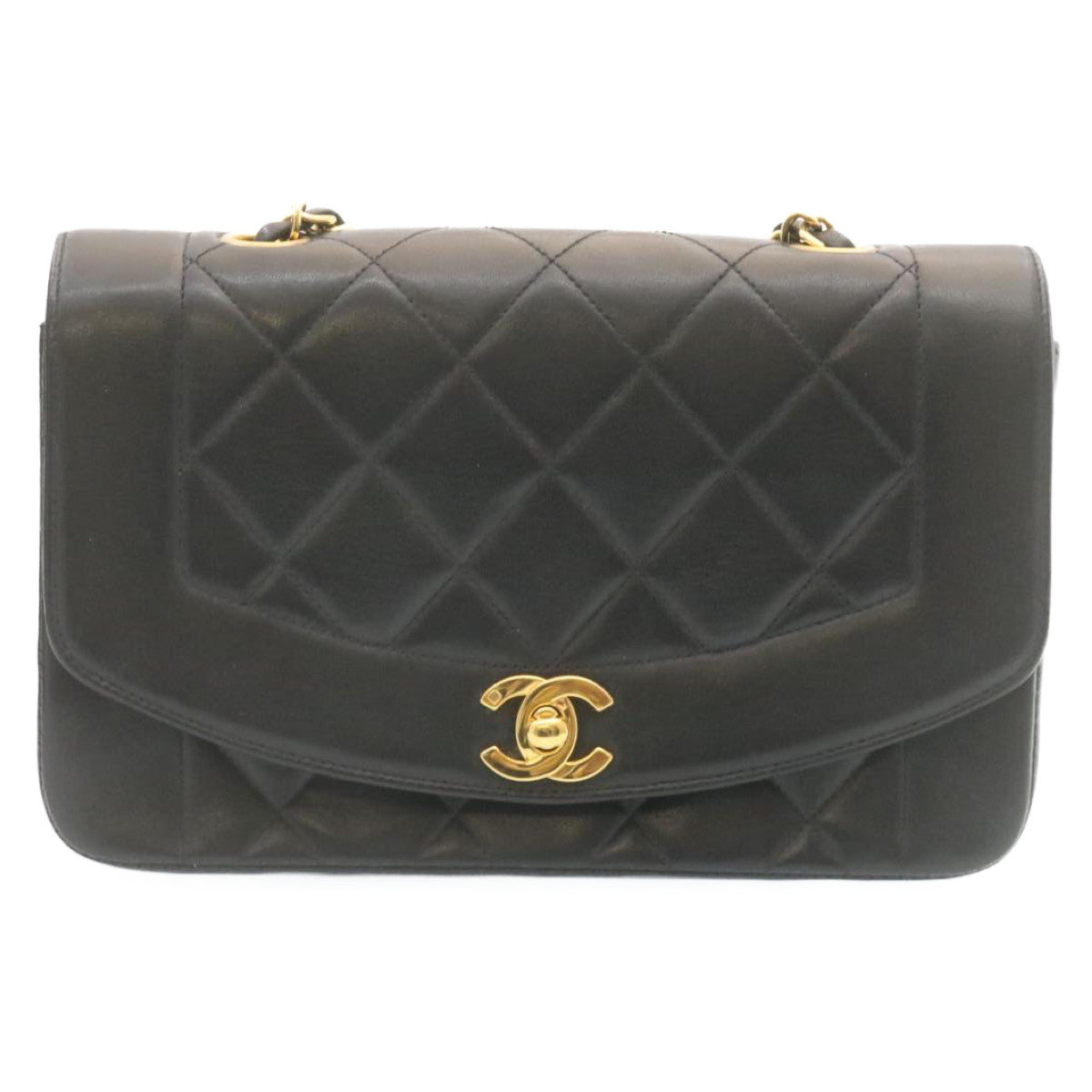 Chanel Chain Turn Lock Diana Matelasse Shoulder Bag Lamb Skin Black 28643A