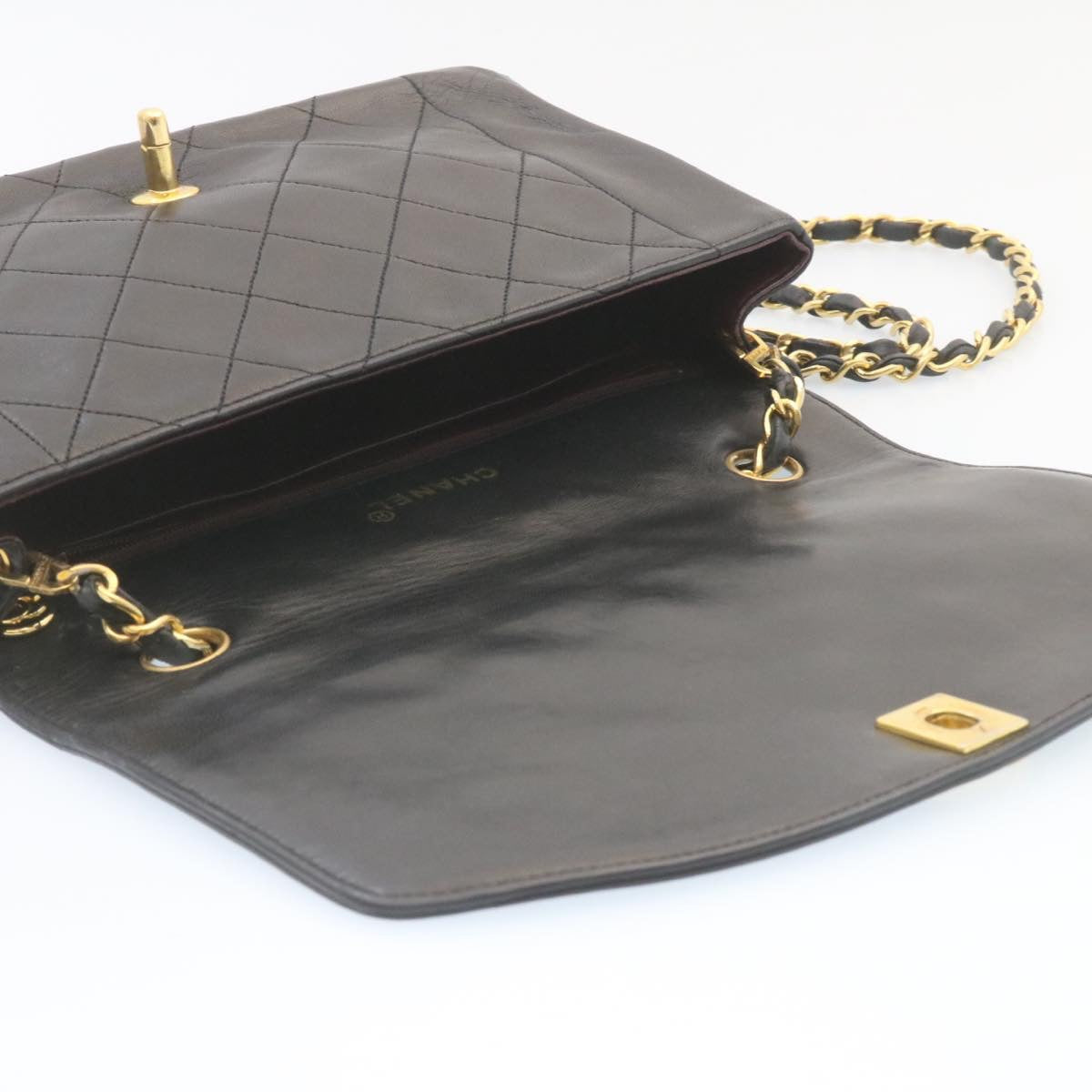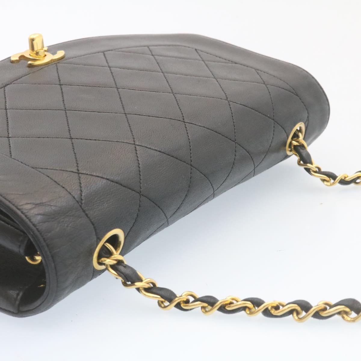 Chanel Chain Turn Lock Diana Matelasse Shoulder Bag Lamb Skin Black Auth 28282A