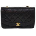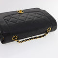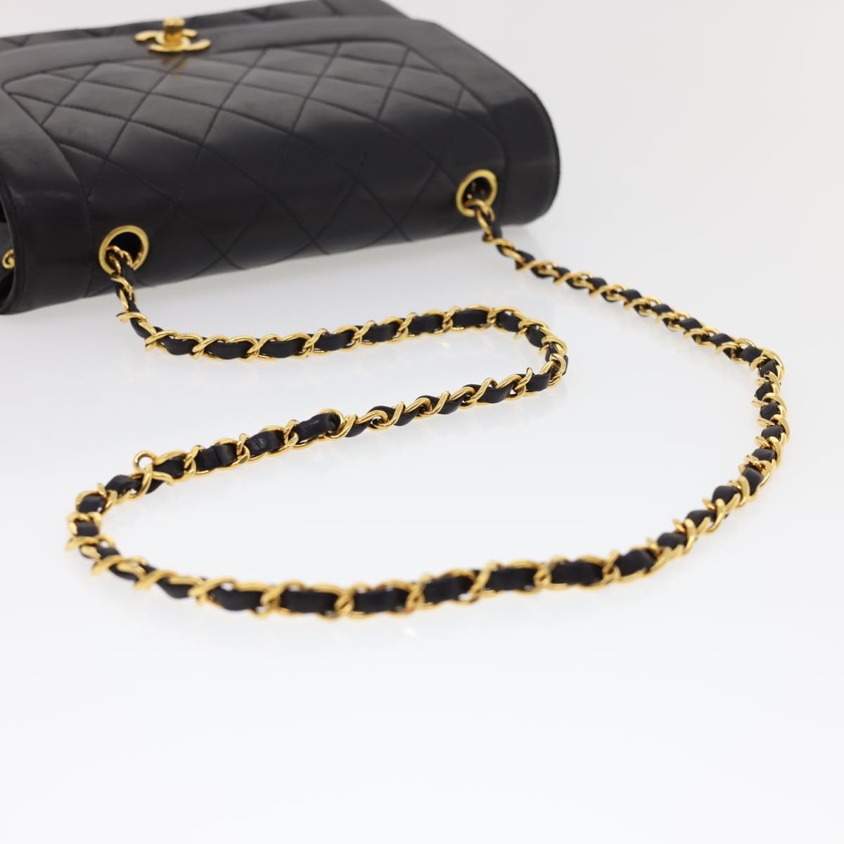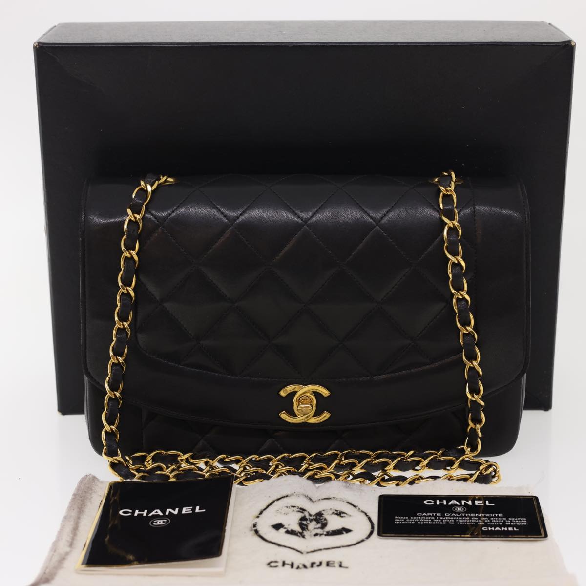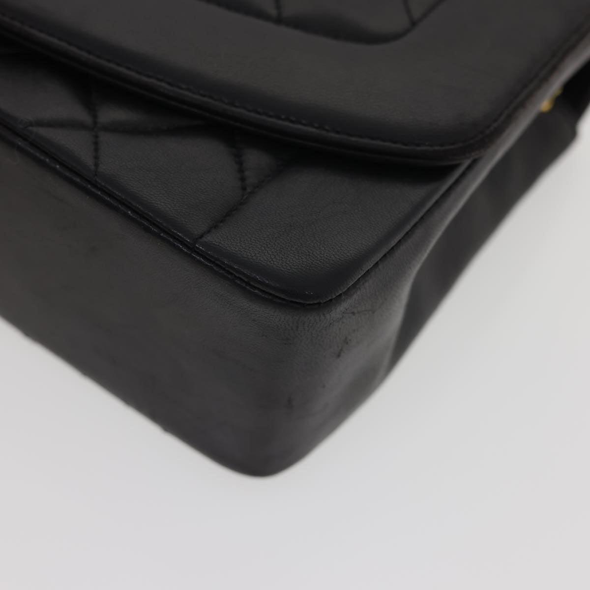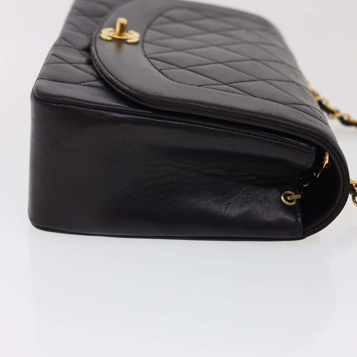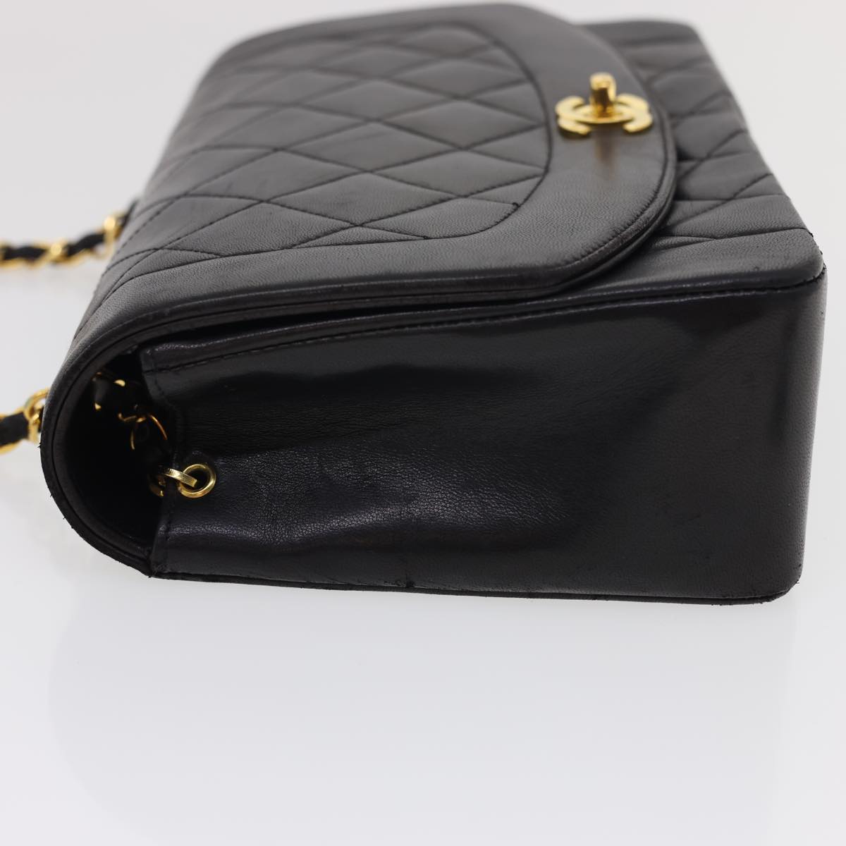Chanel Chain Turn Lock Diana Matelasse Shoulder Bag Lamb Skin Black Auth rz036A