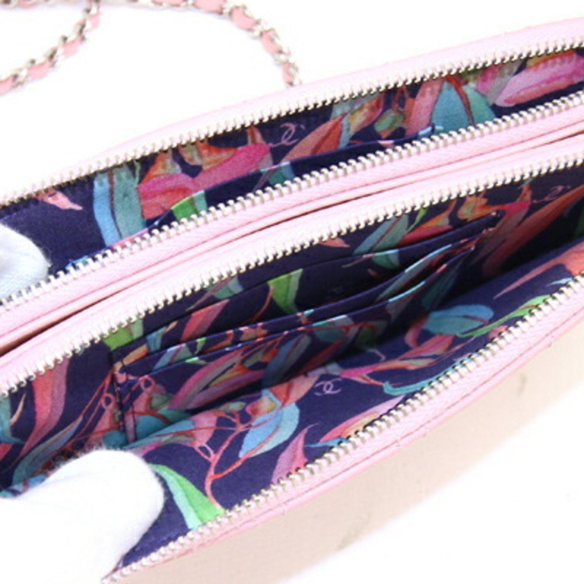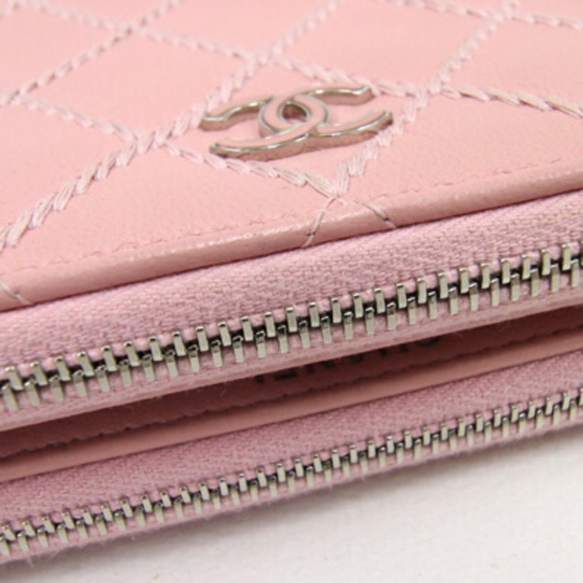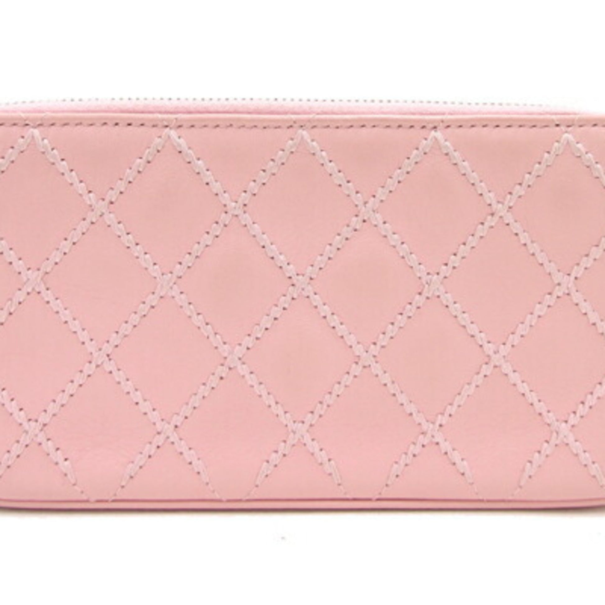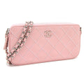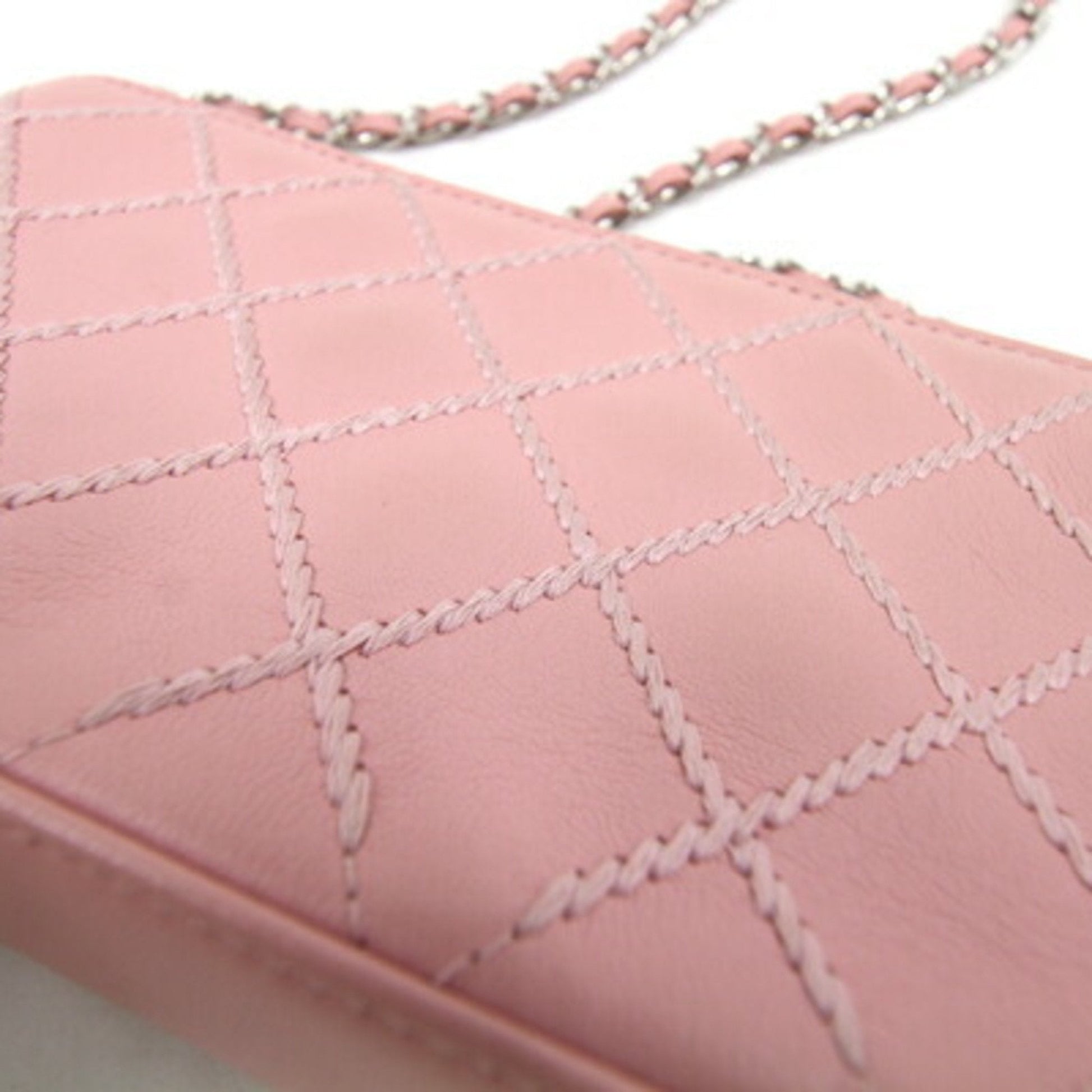 Chanel Chain Wild Stitch A82527 Pink Leather Shoulder Women's Bag Matelasse Quilting Cocomark Long Wallet Chanel