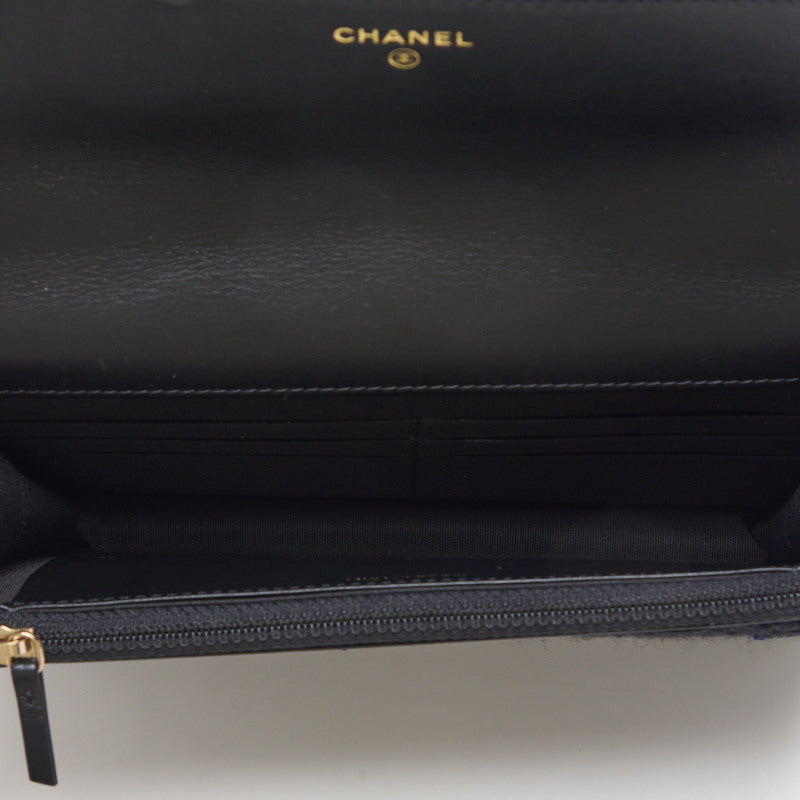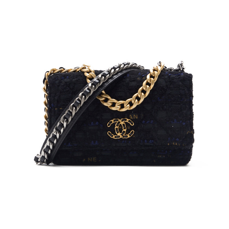 CHANEL ?CHANEL? CHANEL 19 Matrasse Chain Wallet Tweed Black Blue (Gen × Silver Gold) Wallet Coupon Wallet ?French?