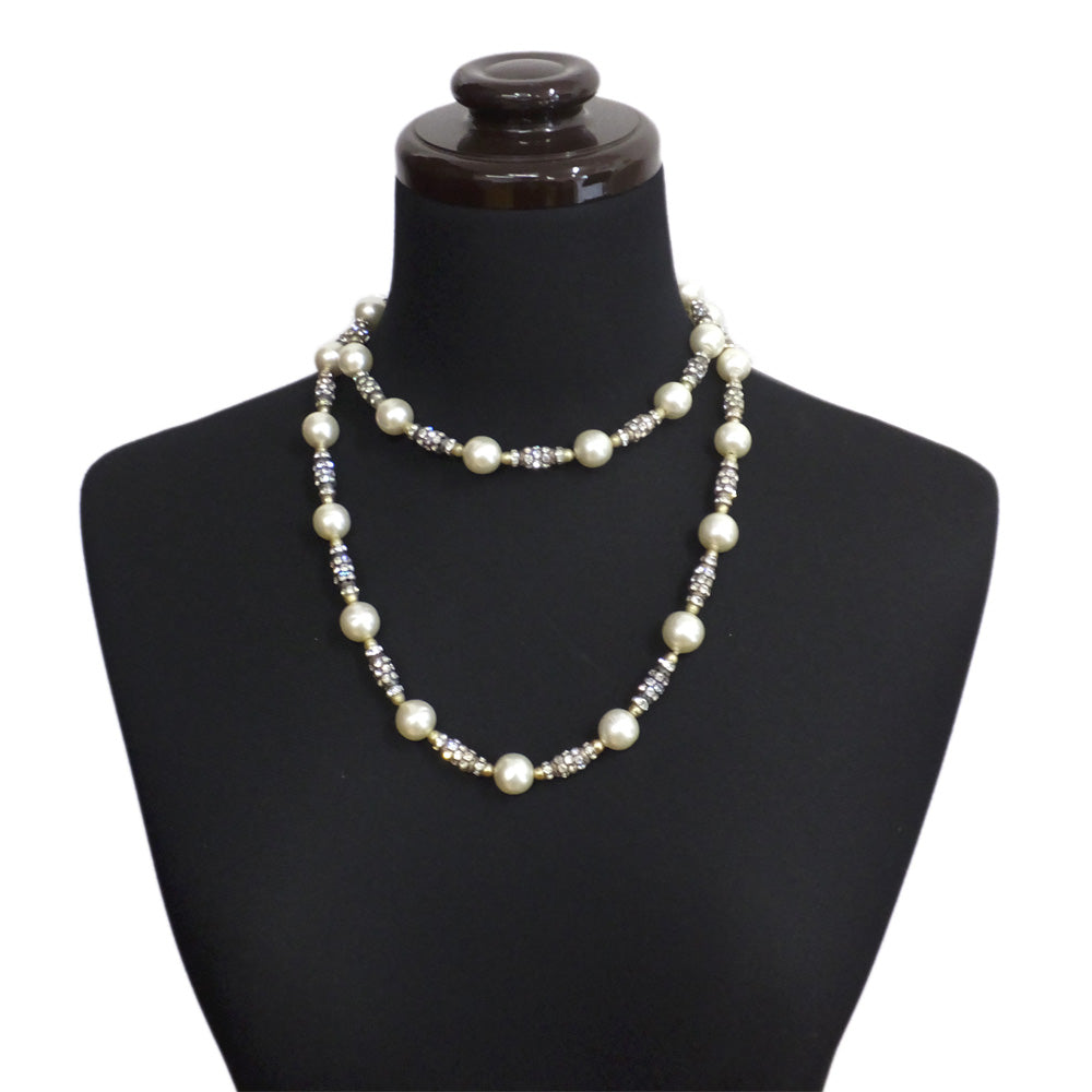 ?Chanel?Chanel necklace 93cm Pearl Rhinestone G Silver Gold Accessories Small Fake Quality Wood
