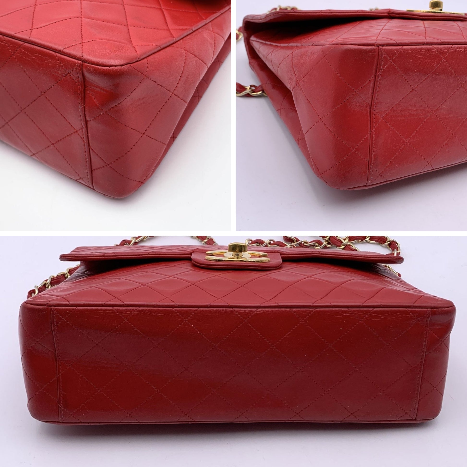 Vintage Chanel 'Jumbo' Timeless Classic Flap 2.55 Bag In Red Quilted Leather.
