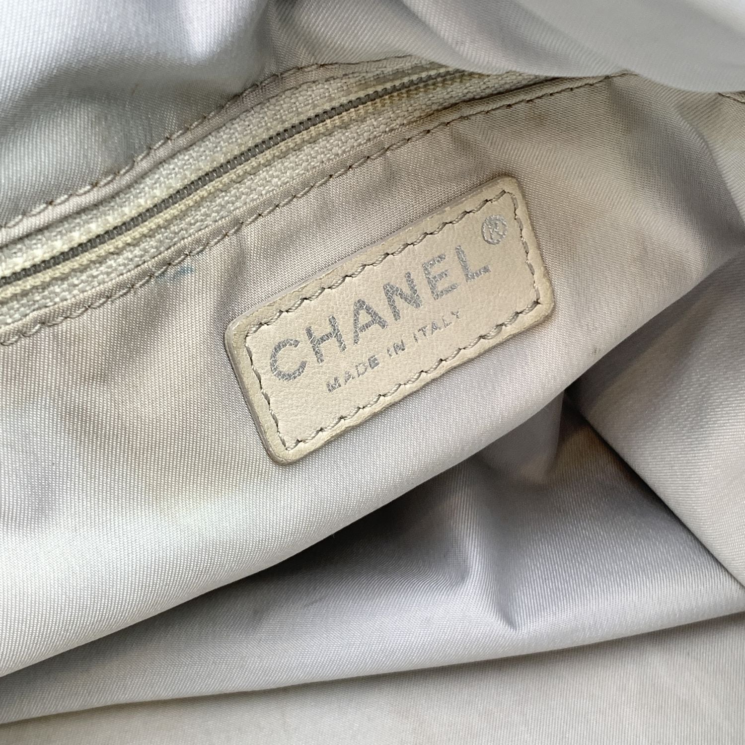 Beautiful Chanel 'Paris-biarritz' Bag In Gray Metallic Color With White Trim.