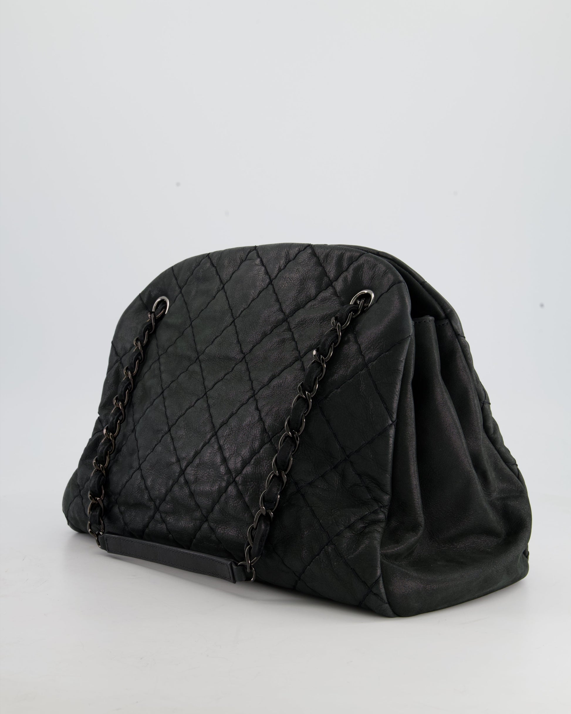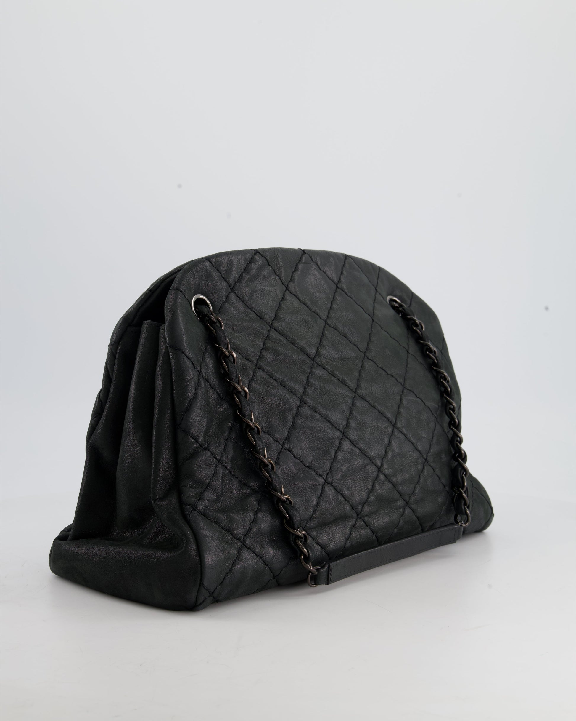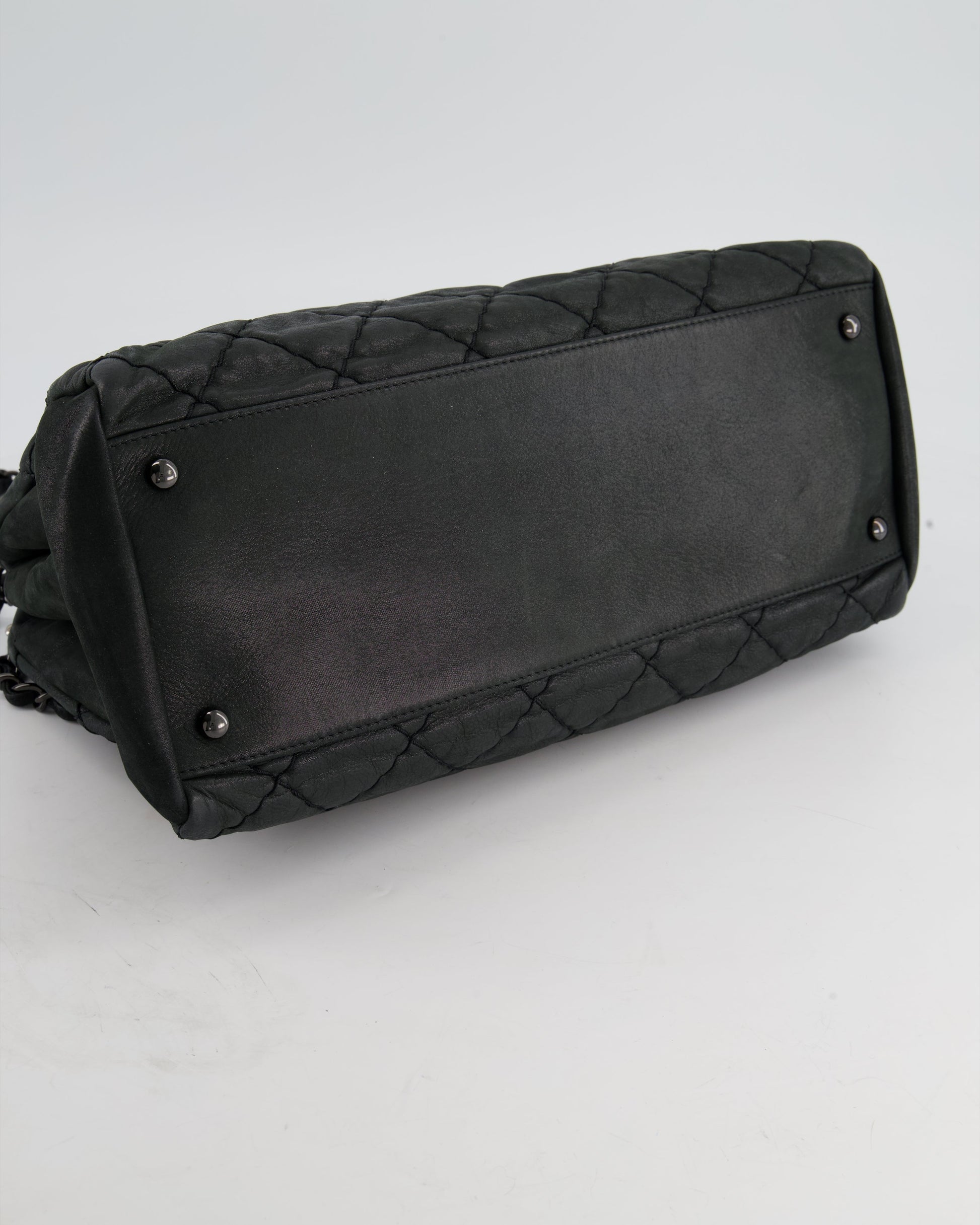 Chanel Charcoal Shimmer Quilted Lambskin CC Shoulder Bag with So Black Hardware
