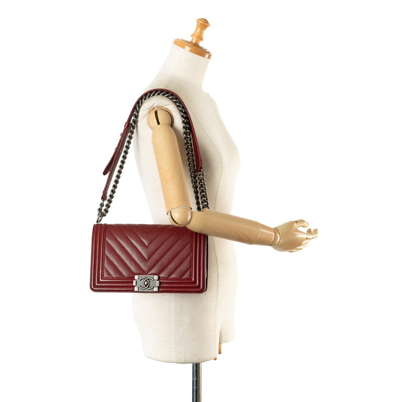Chanel Chevron Caviar Le Boy Flap Bag Leather Shoulder Bag in Good condition