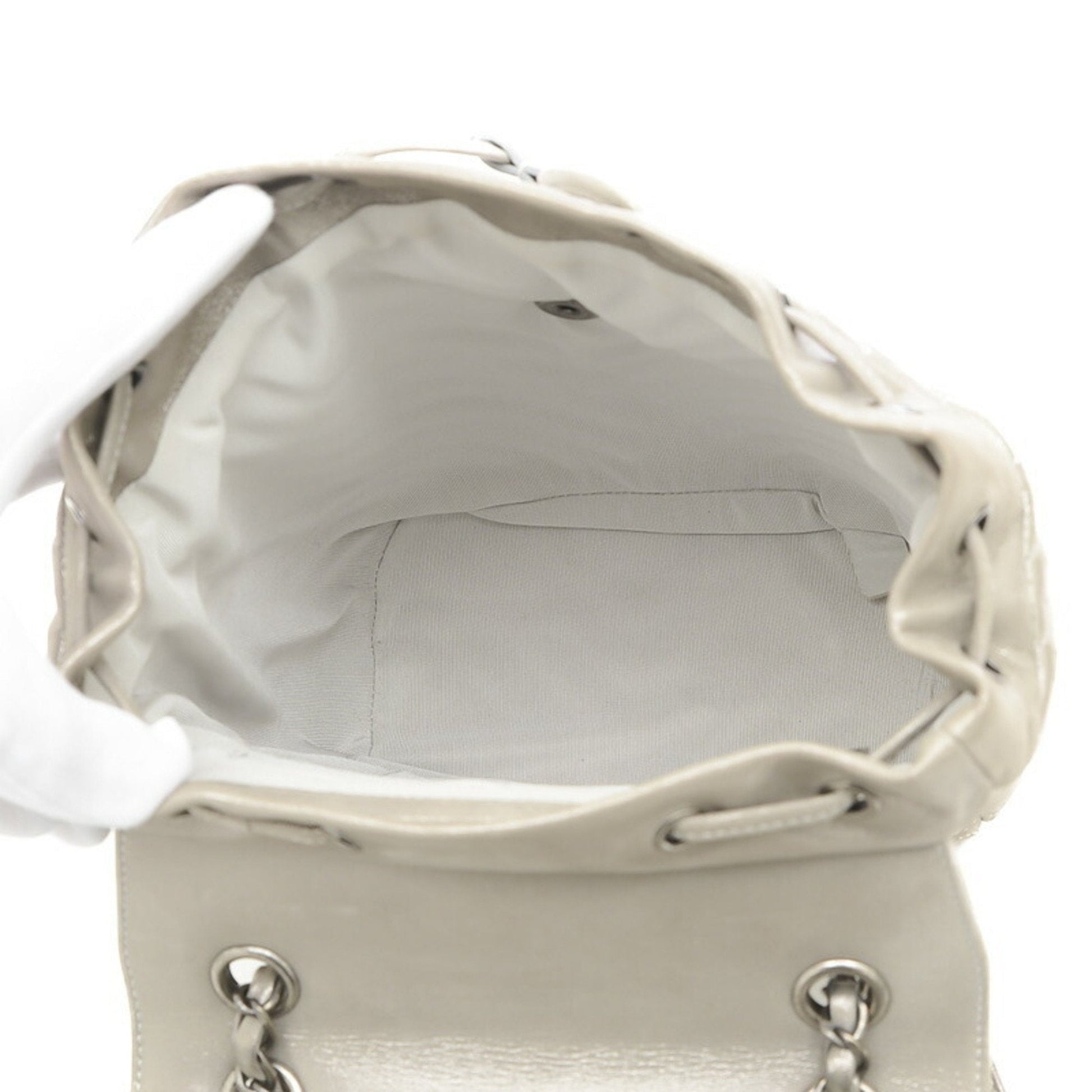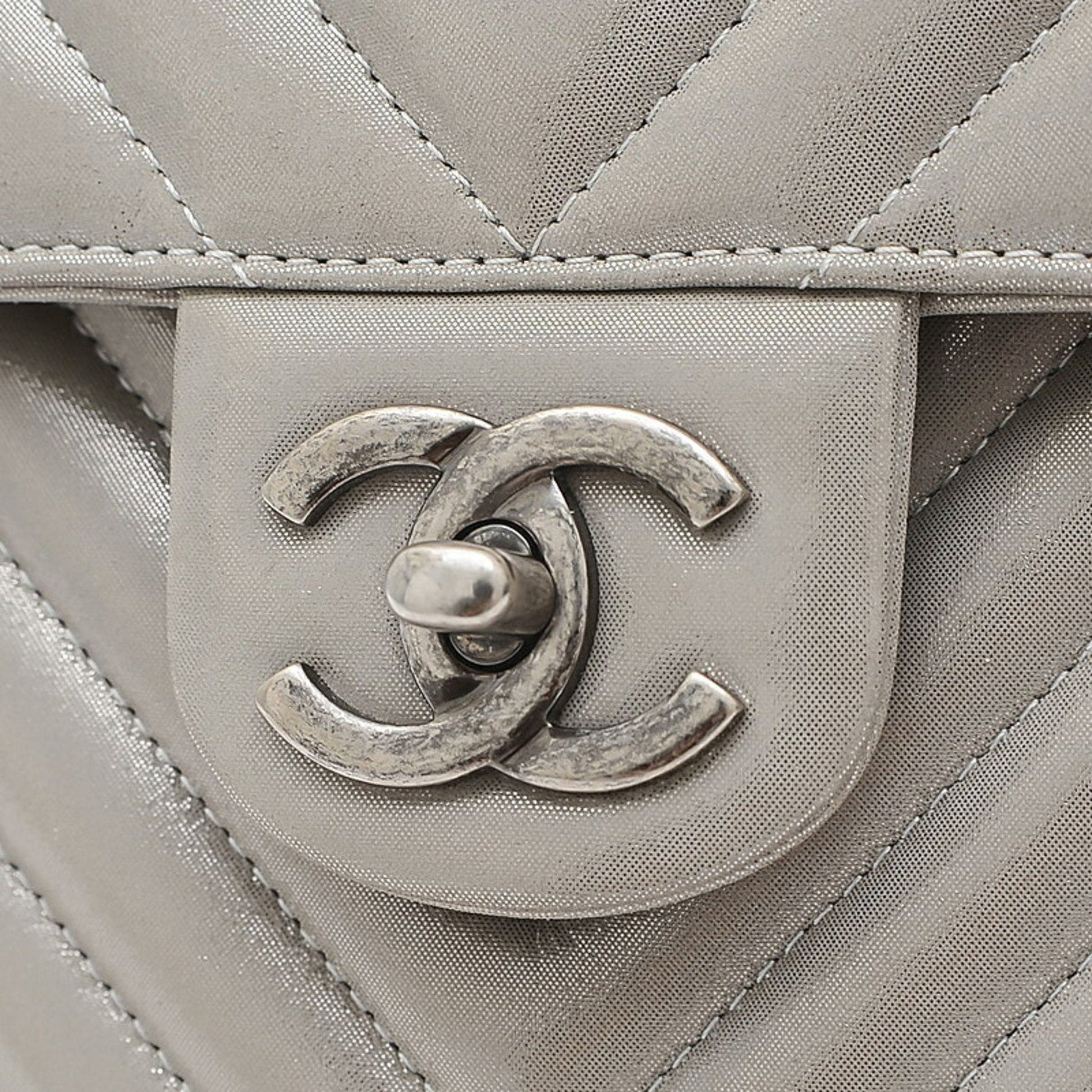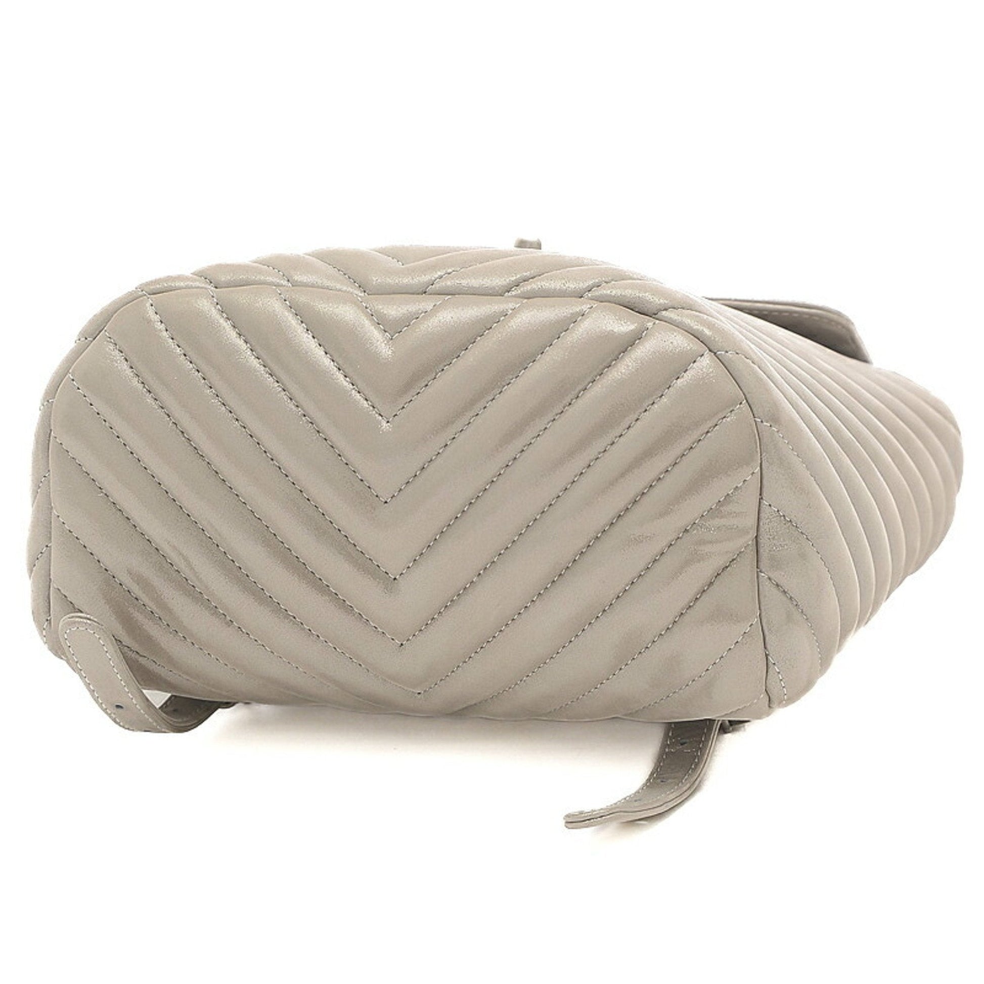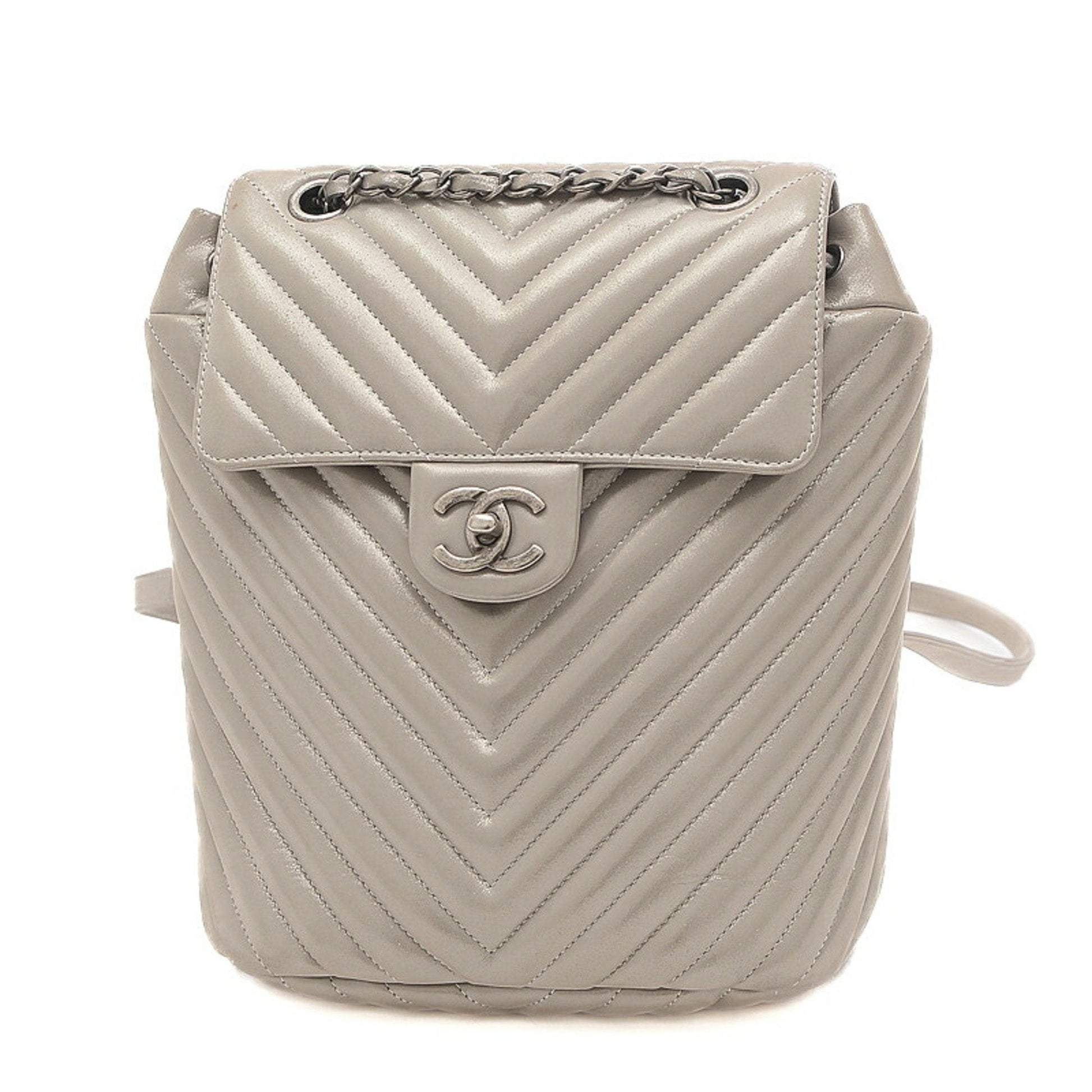 Chanel Chevron V Stitch Rucksack Backpack Leather Silver A91121