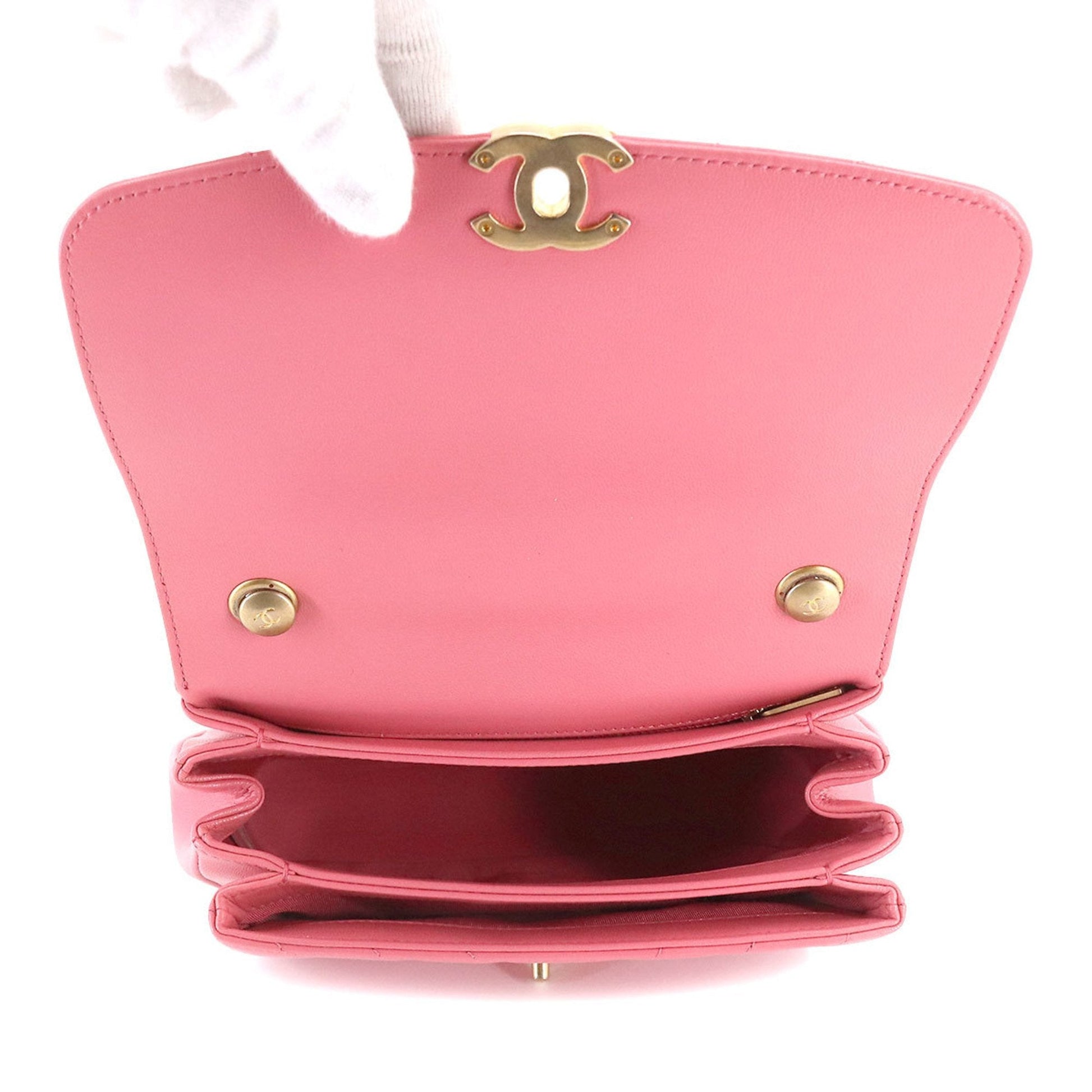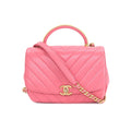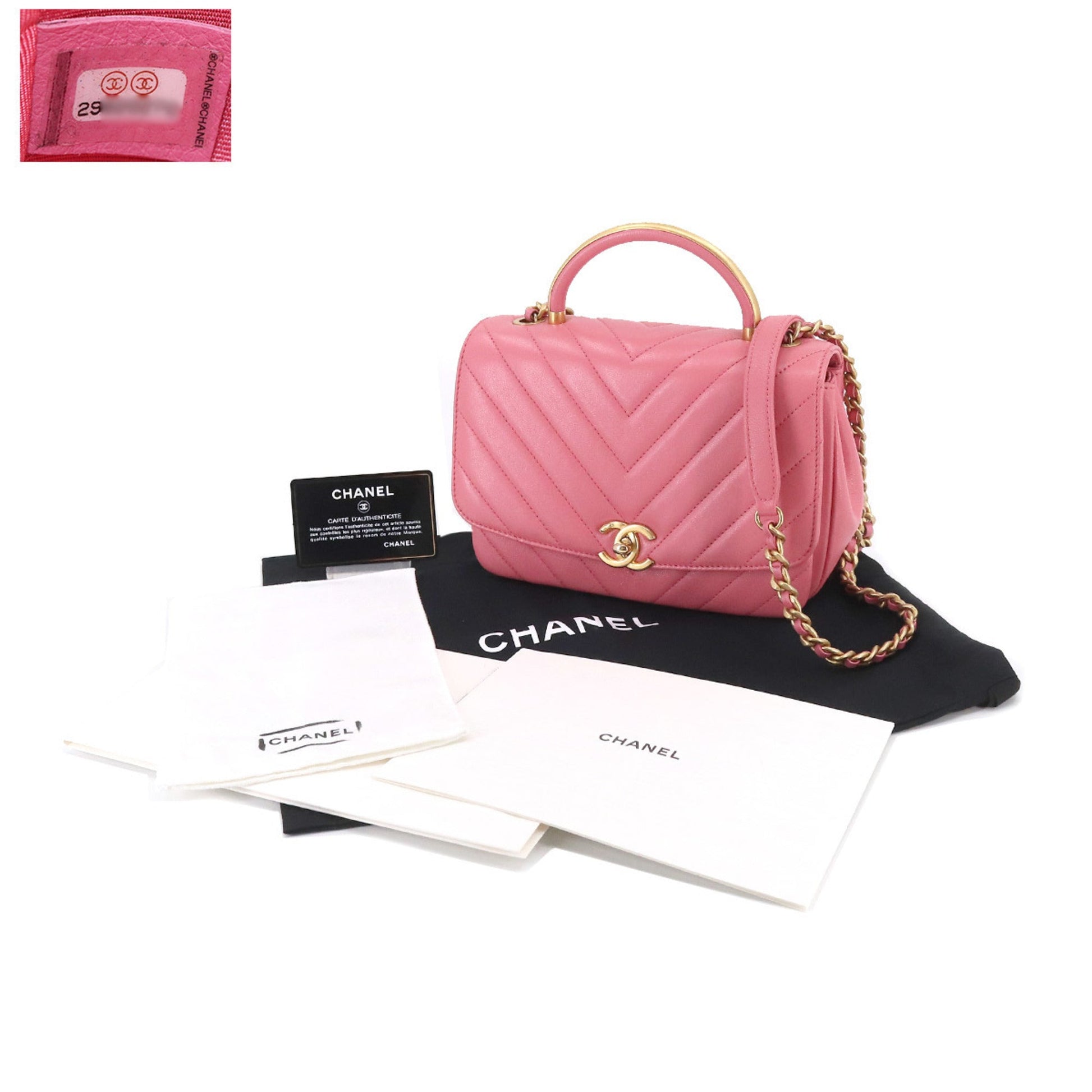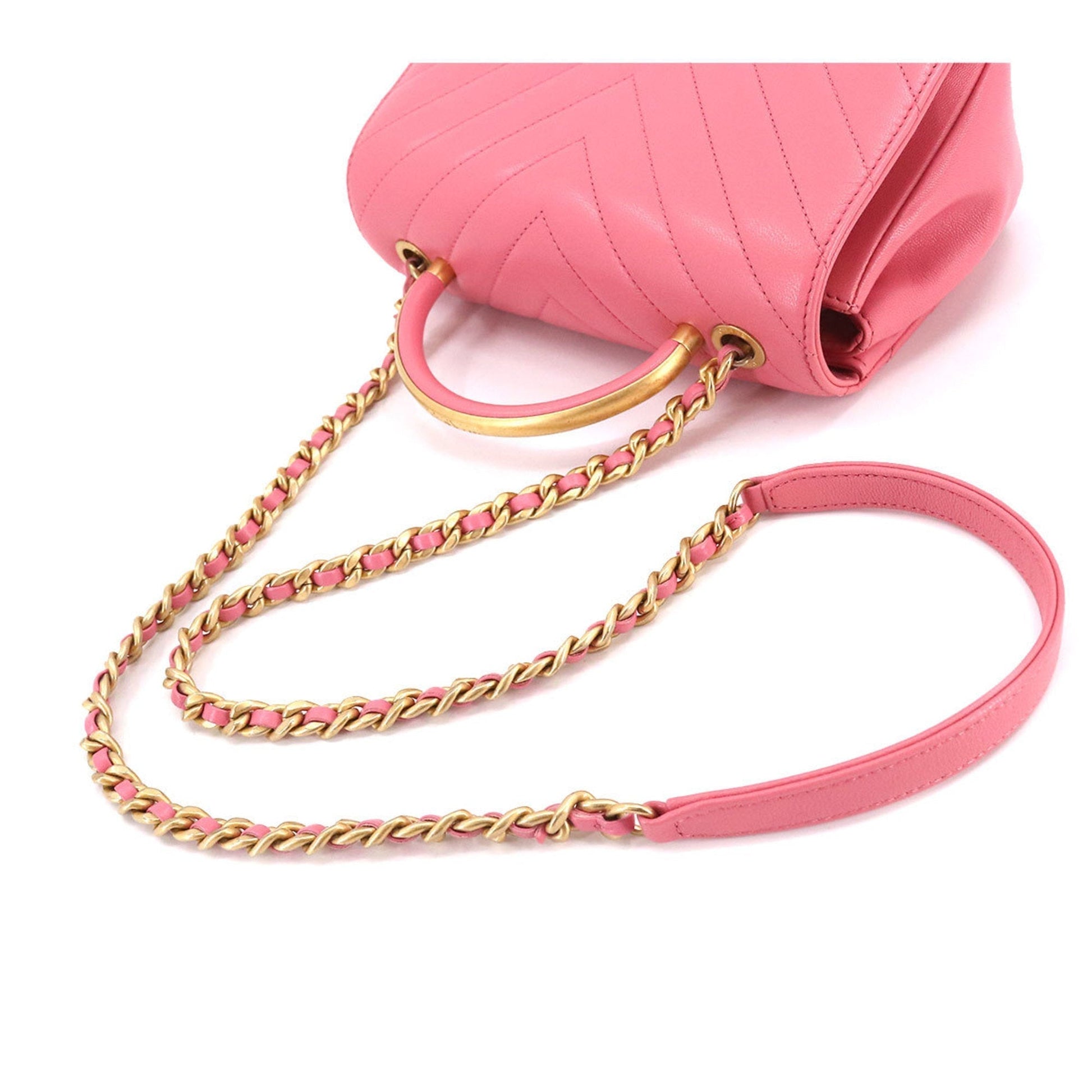 Chanel Chevron V Stitch Top Handle 2way Hand Shoulder Bag Leather Pink