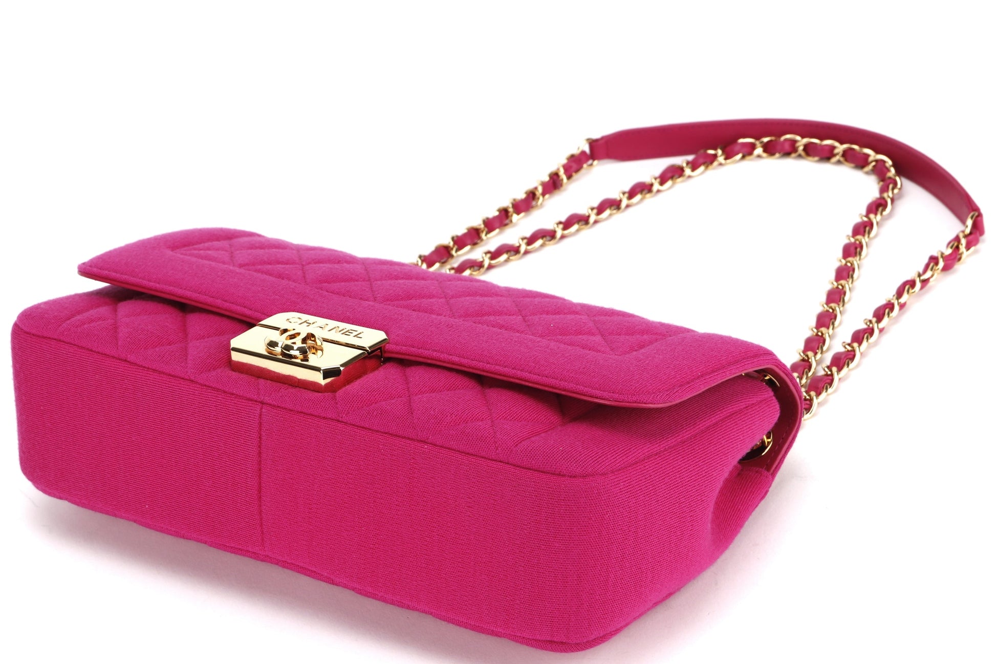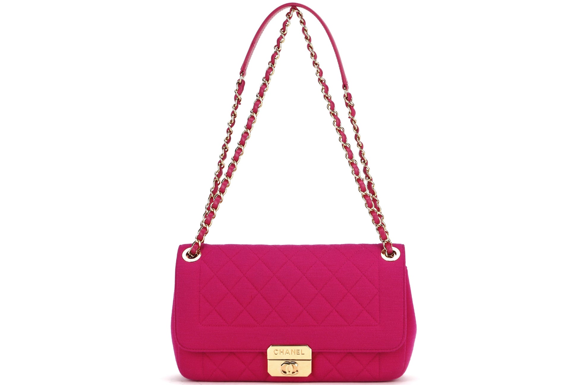 CHANEL CHIC WITH ME FLAP (2016xxxx) LARGE PINK JERSEY GOLD HARDWARE, WITH & DUST COVER