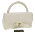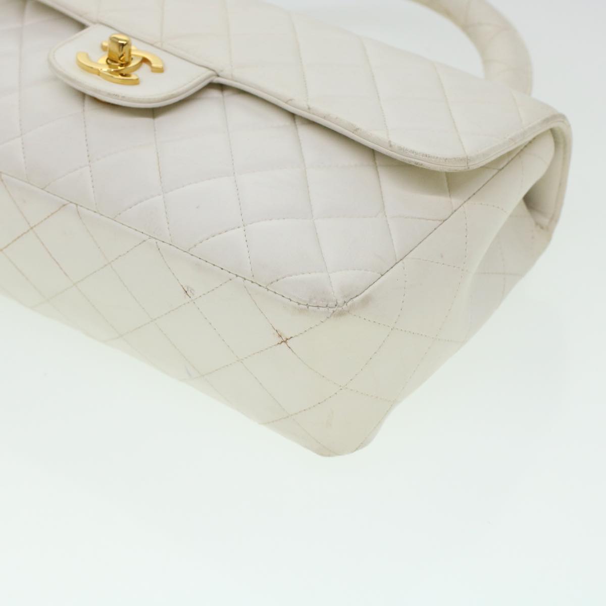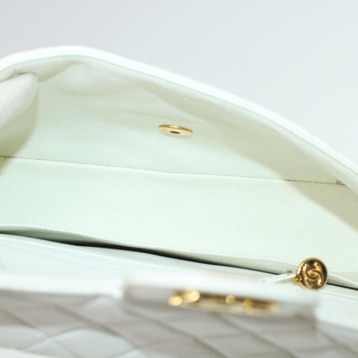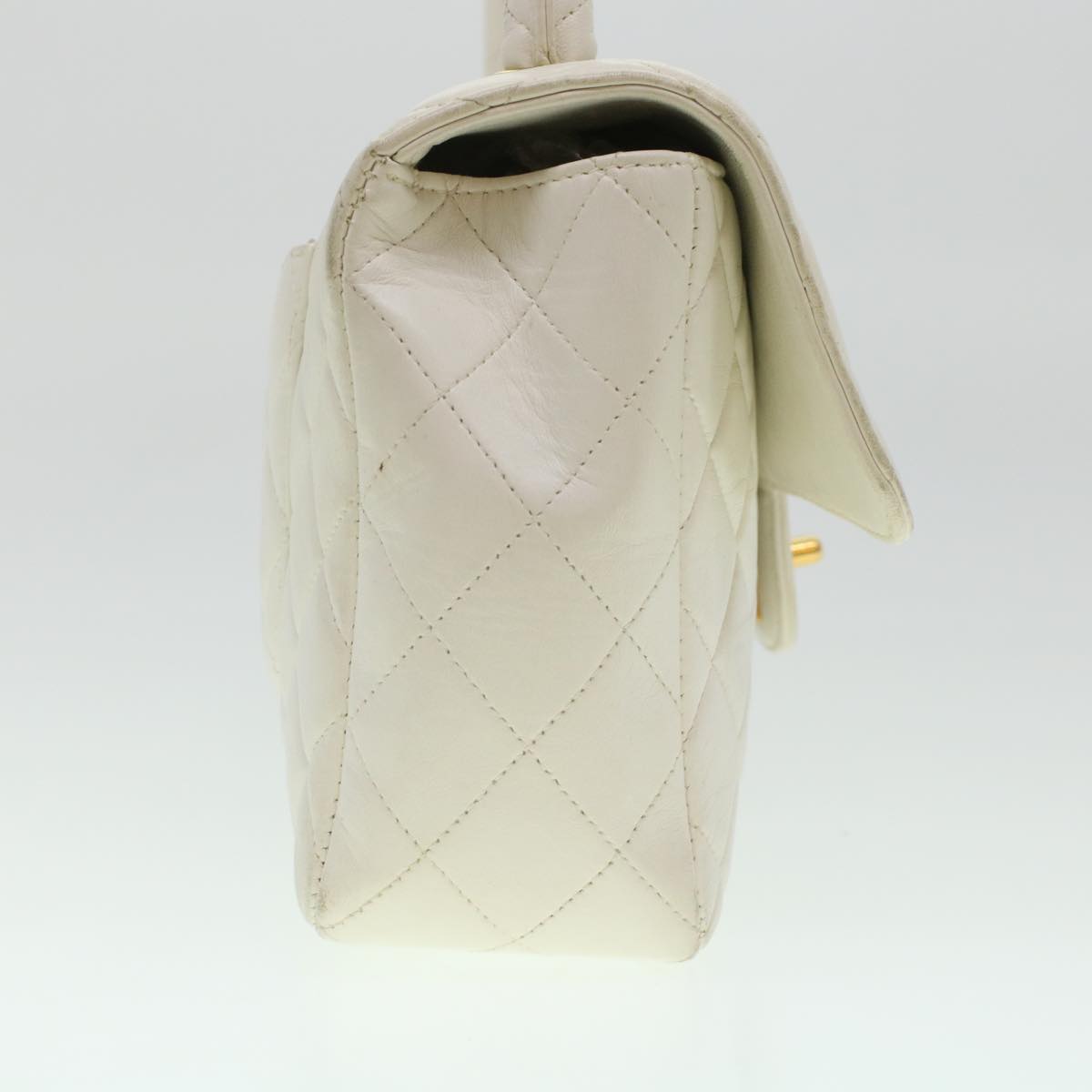 Chanel Child Bag Hand Bag Lamb Skin White CC Auth yk7389B