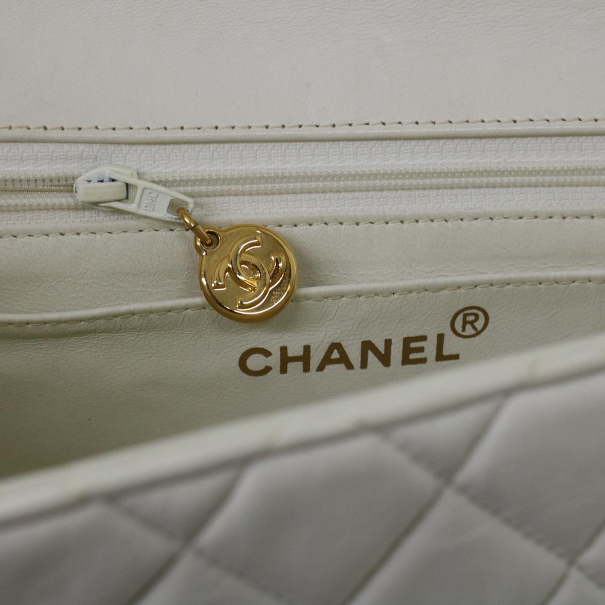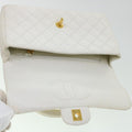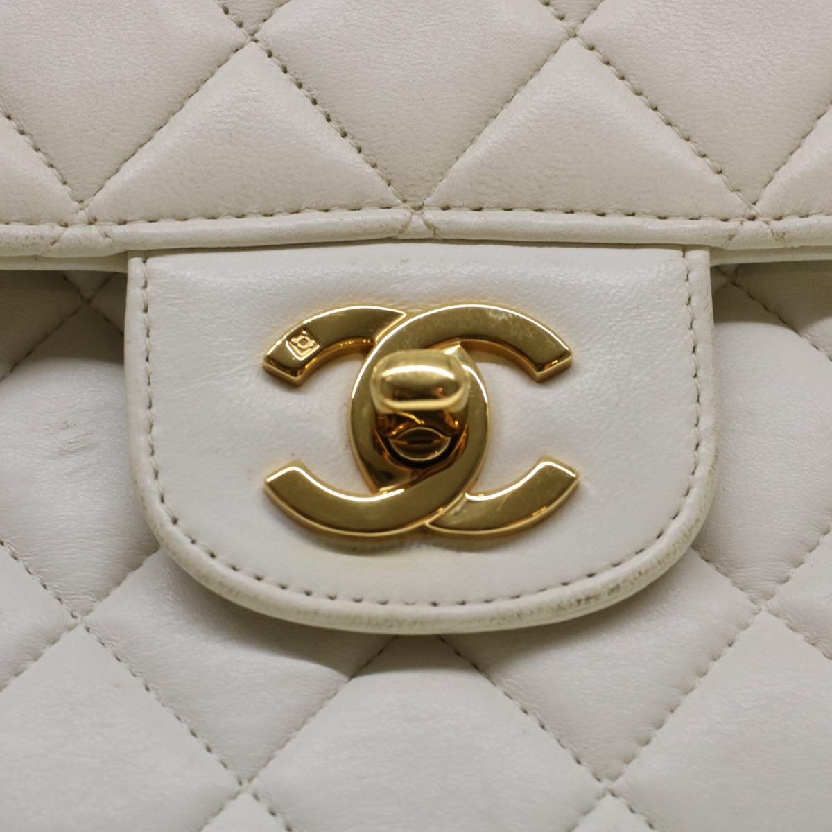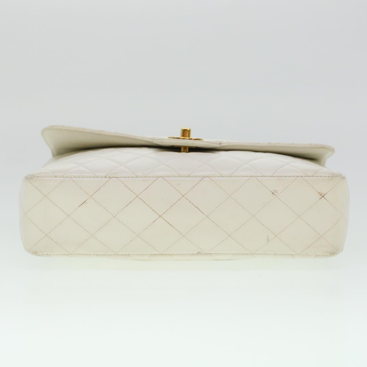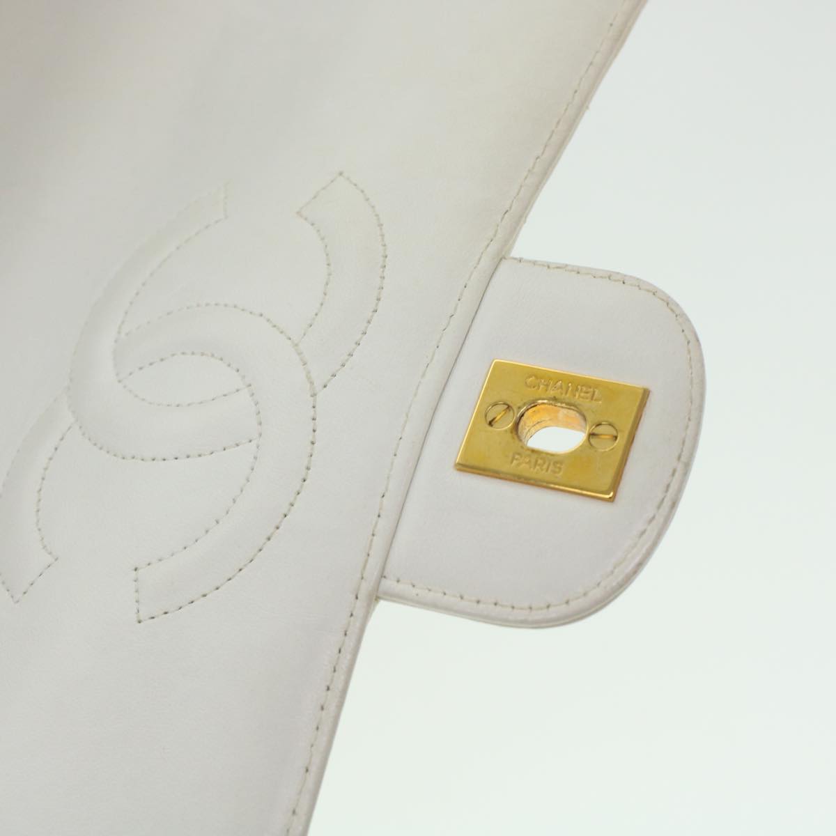 Chanel Child Bag Hand Bag Lamb Skin White CC Auth yk7389B