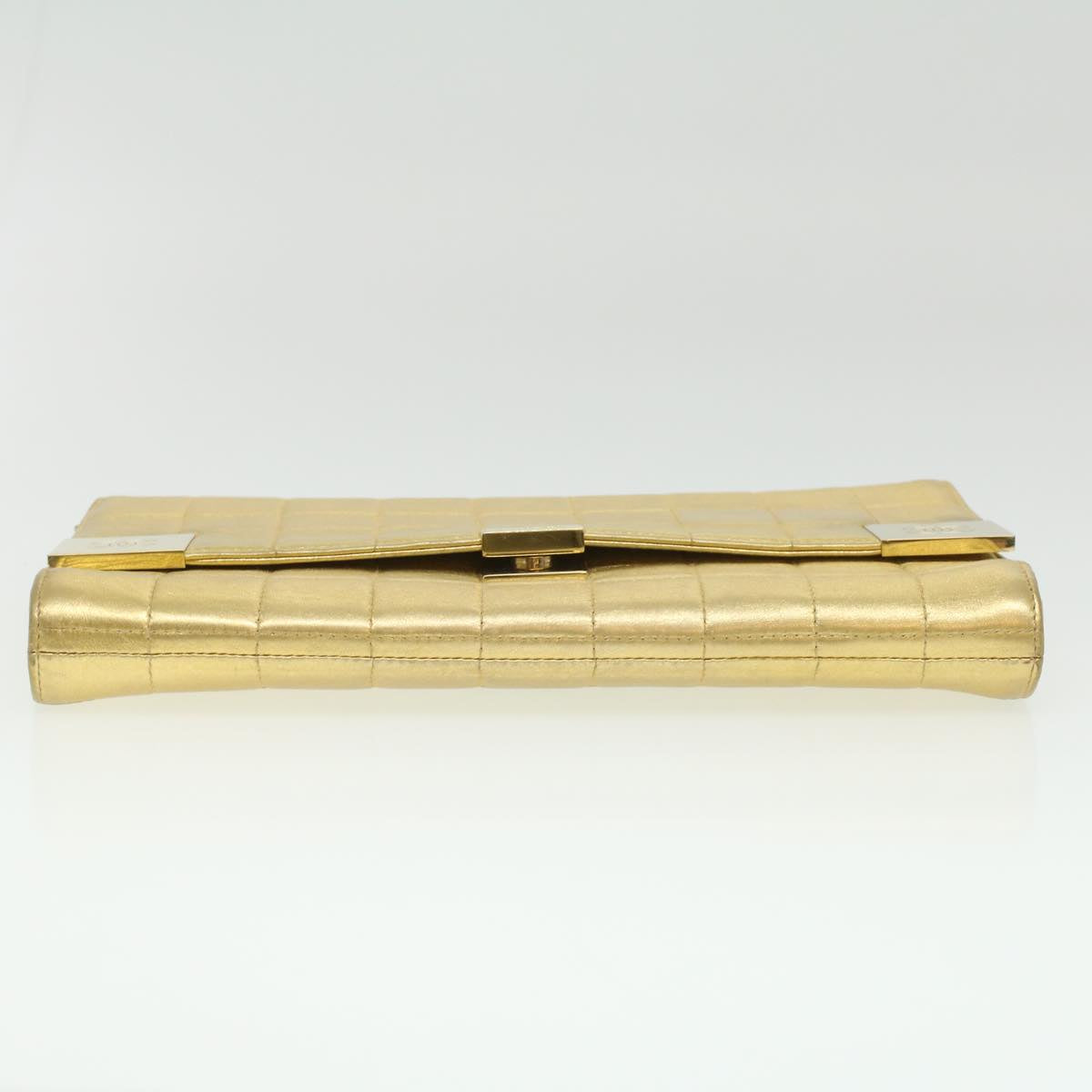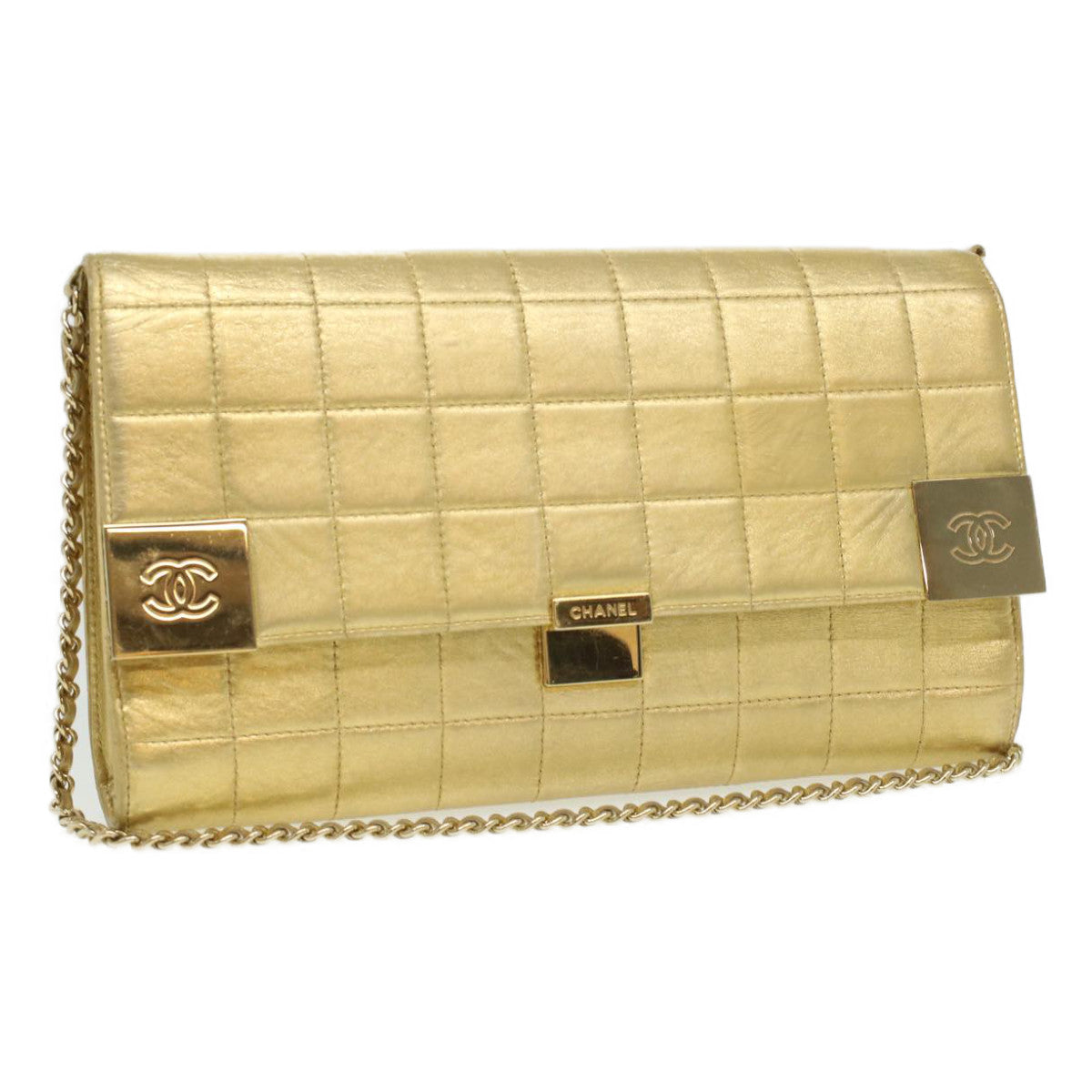 Chanel Choco Bar line Chain Shoulder Bag Leather Gold CC Auth bs3477A