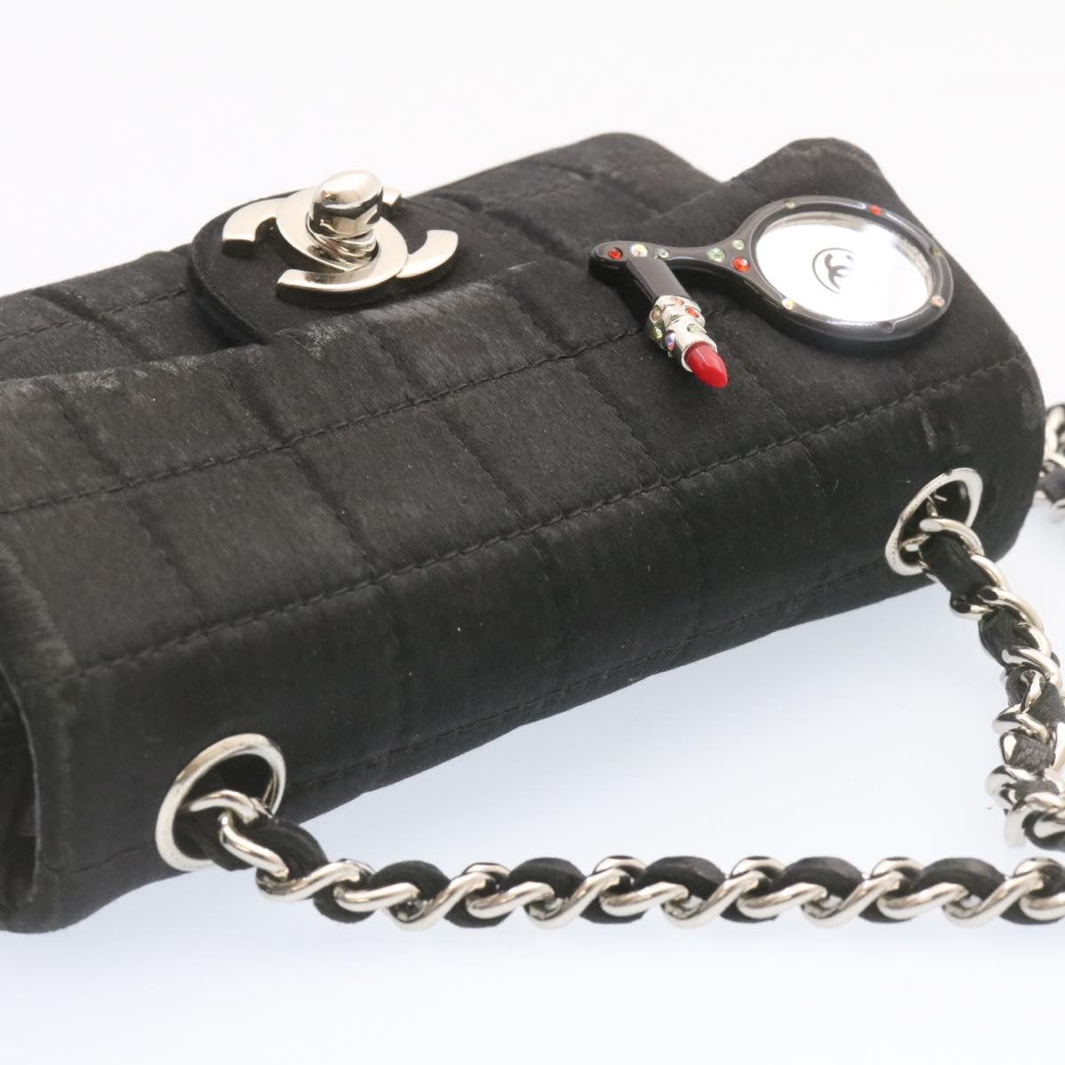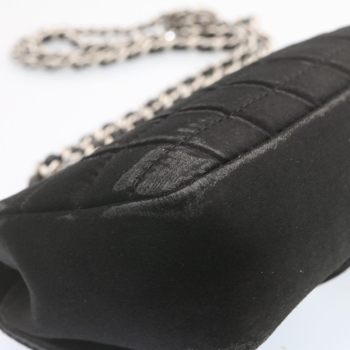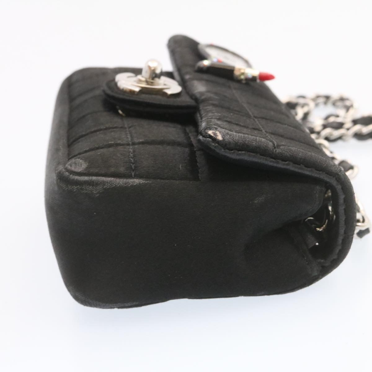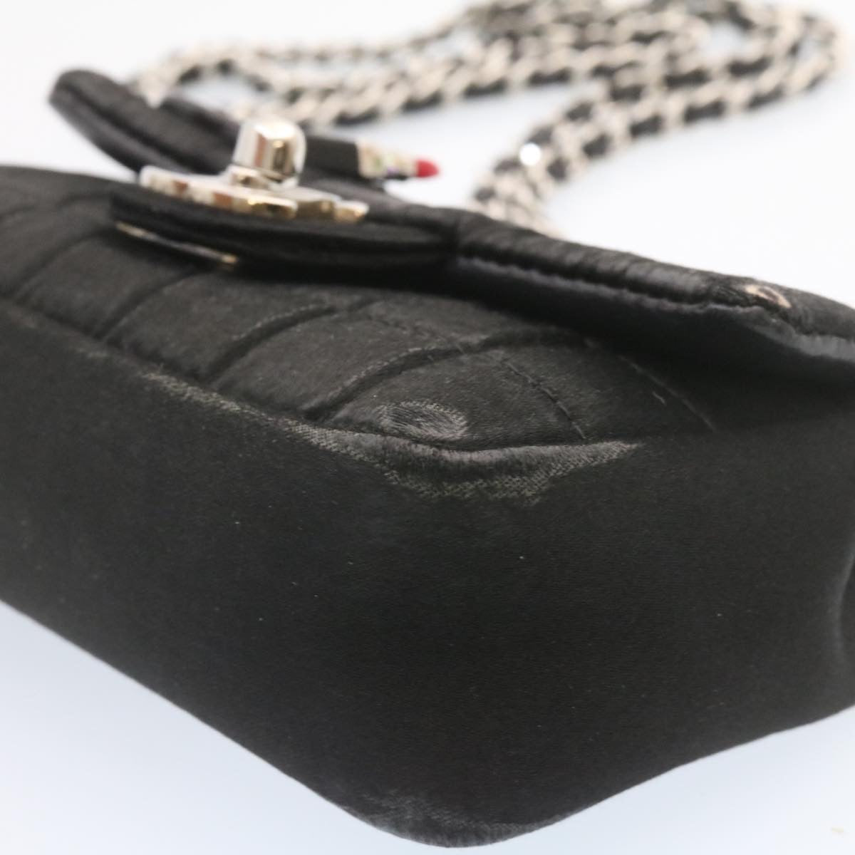 Chanel Choco Bar Rouge Racket Linestone Shoulder Bag Satin Black CC Auth 24559A