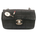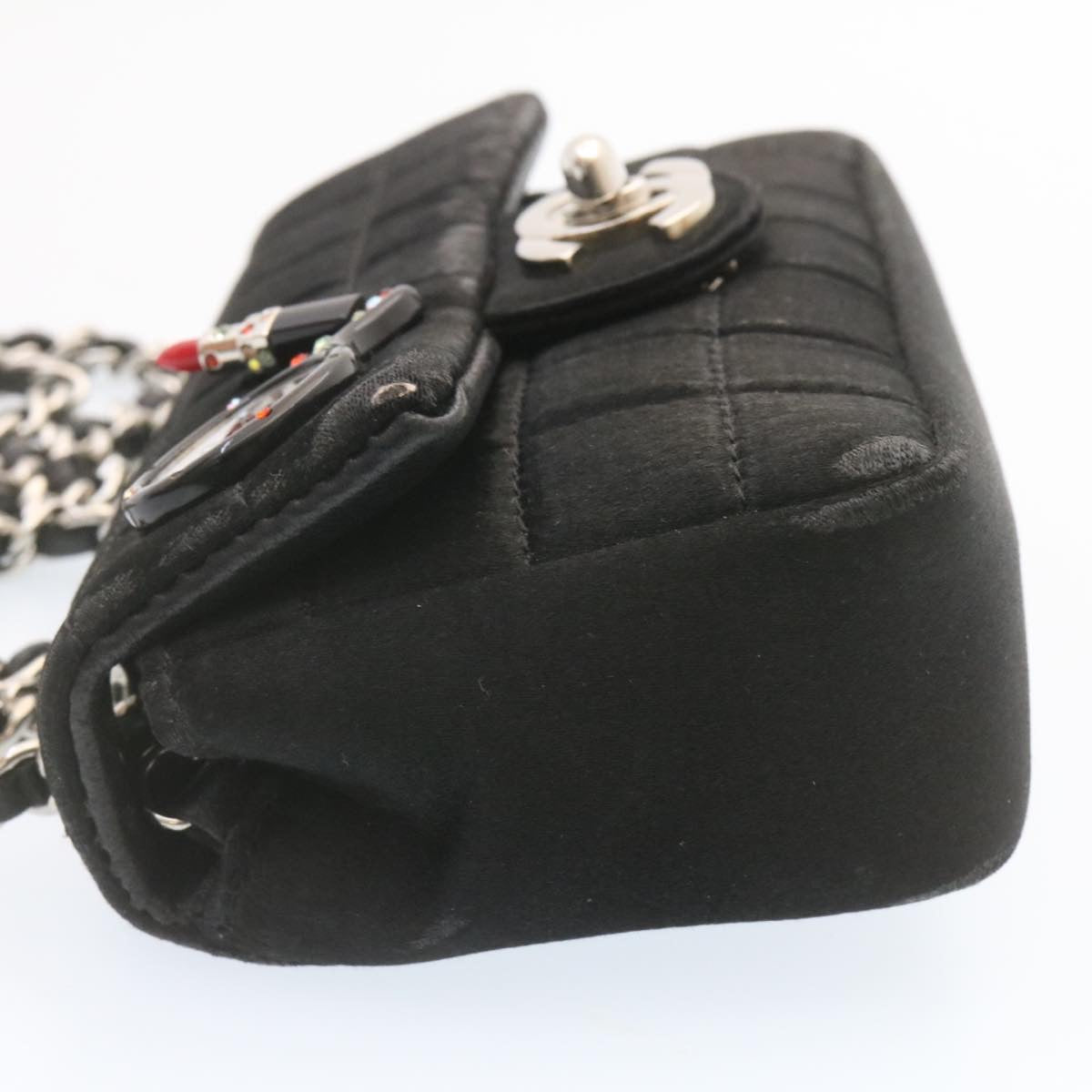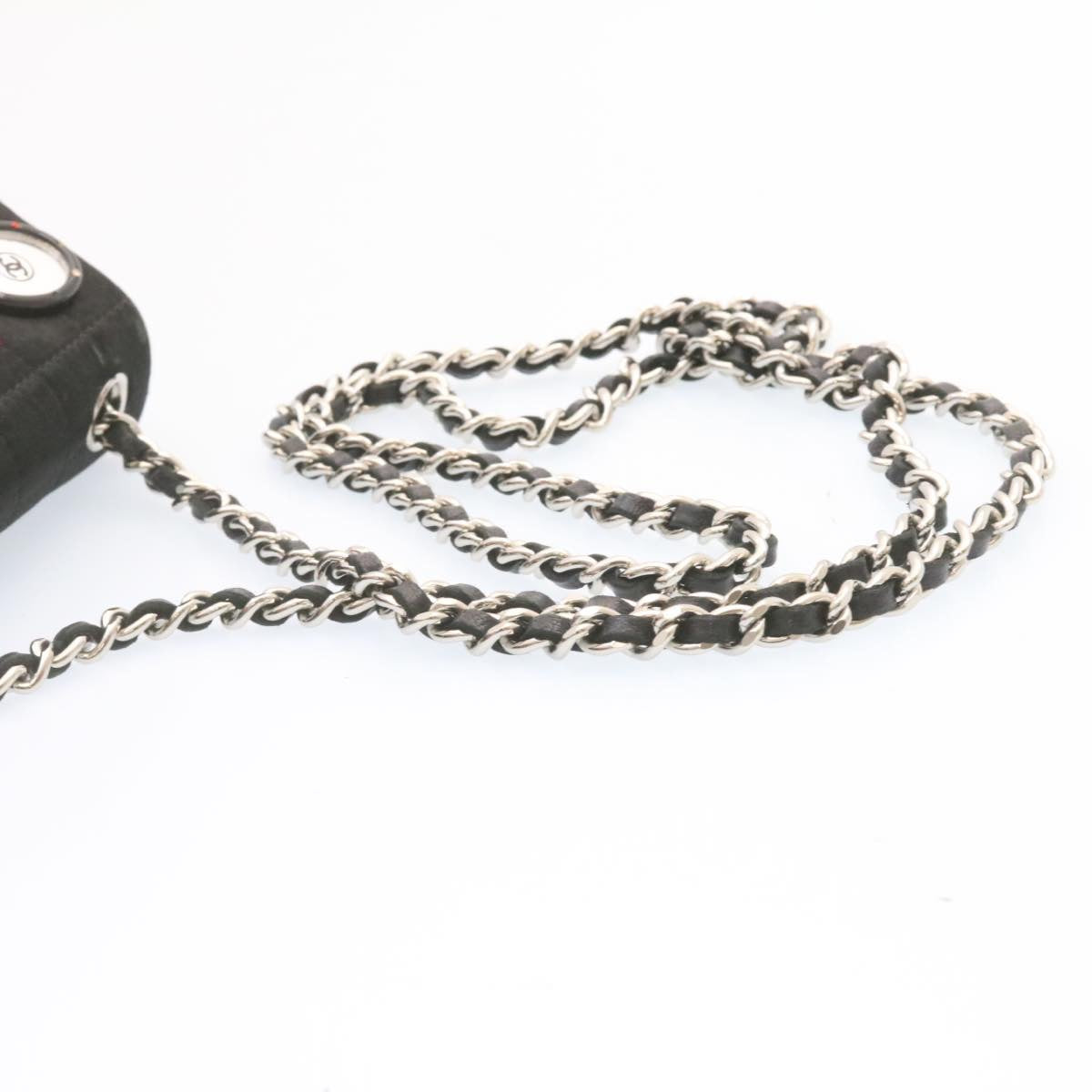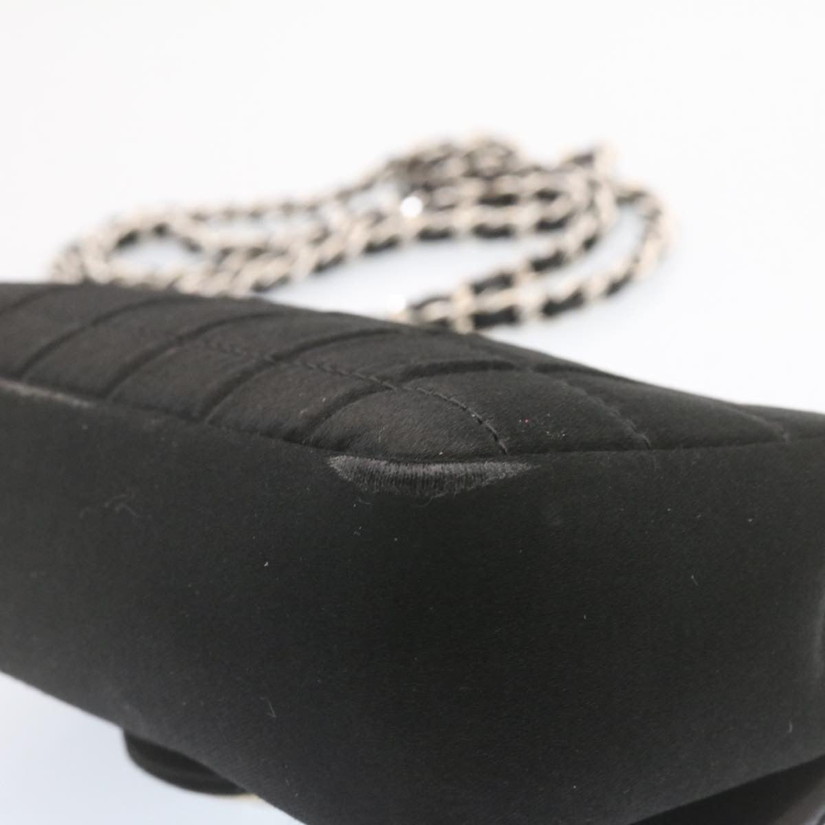 Chanel Choco Bar Rouge Racket Linestone Shoulder Bag Satin Black CC Auth 24559A