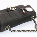 Chanel Choco Bar Rouge Racket Linestone Shoulder Bag Satin Black CC 24559A