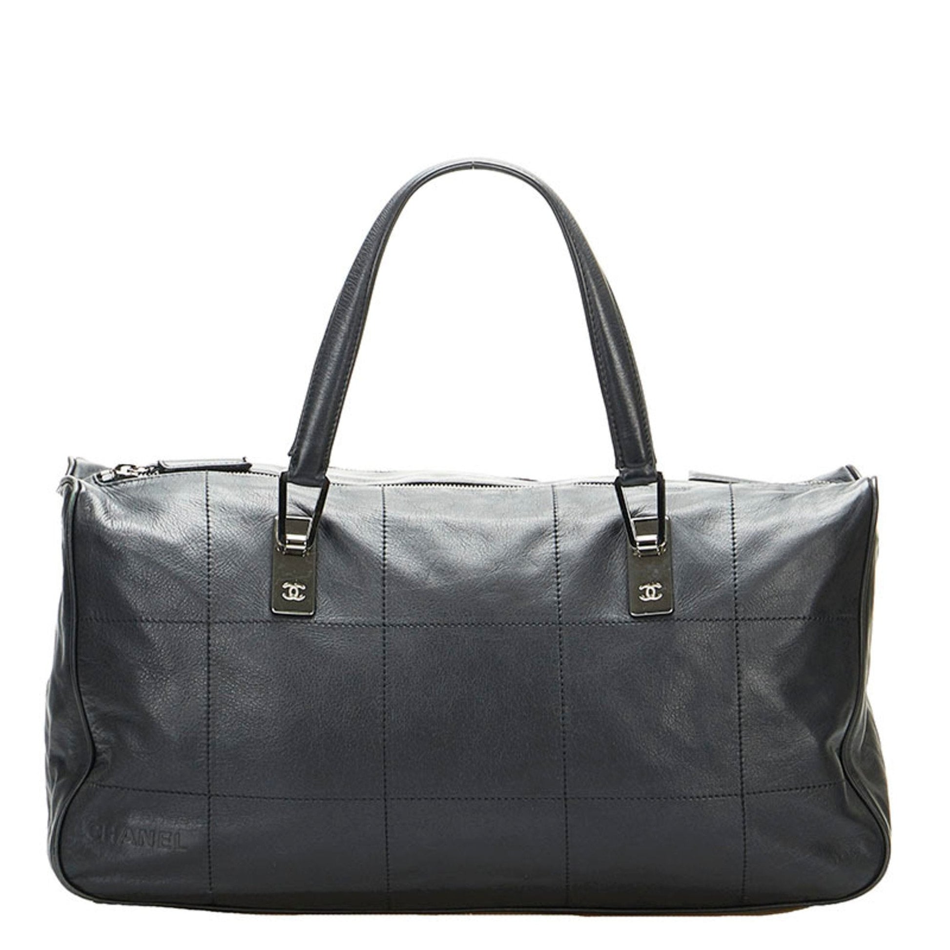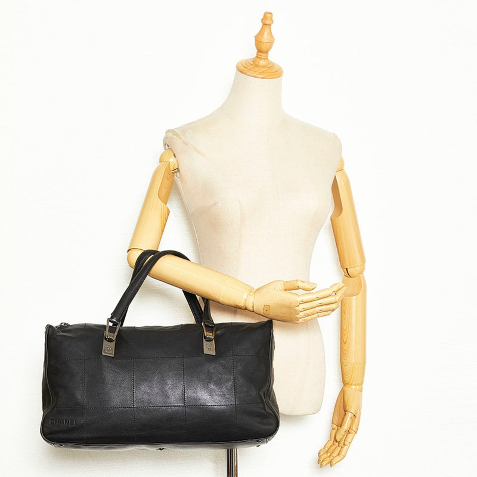 Chanel Chocolate Bar Coco Mark HandBag Boston Bag Black Leather Ladies Chanel