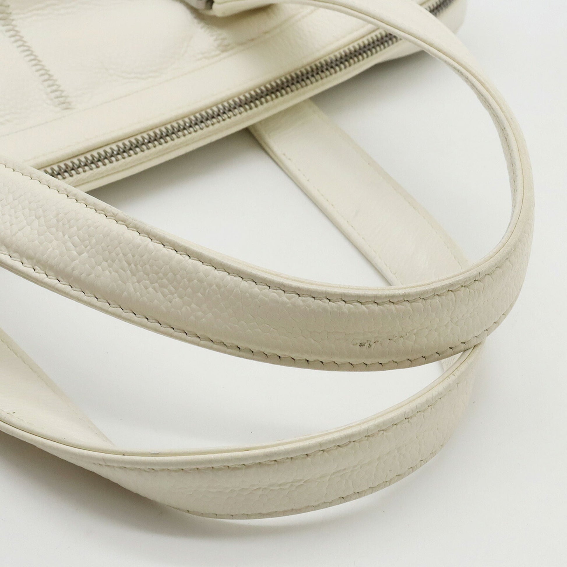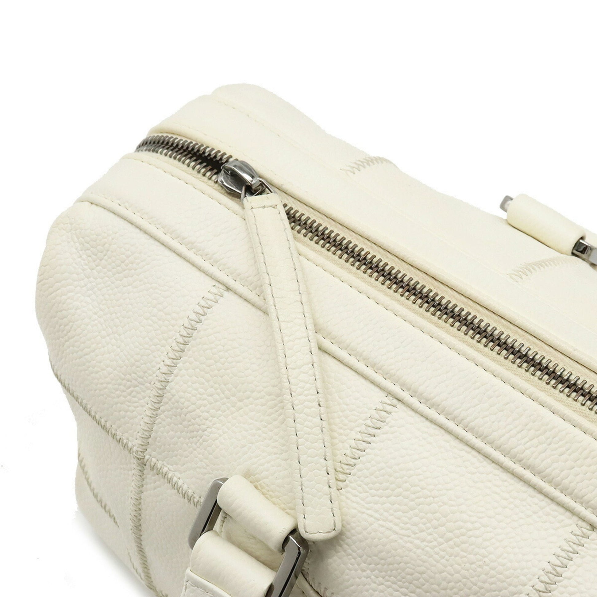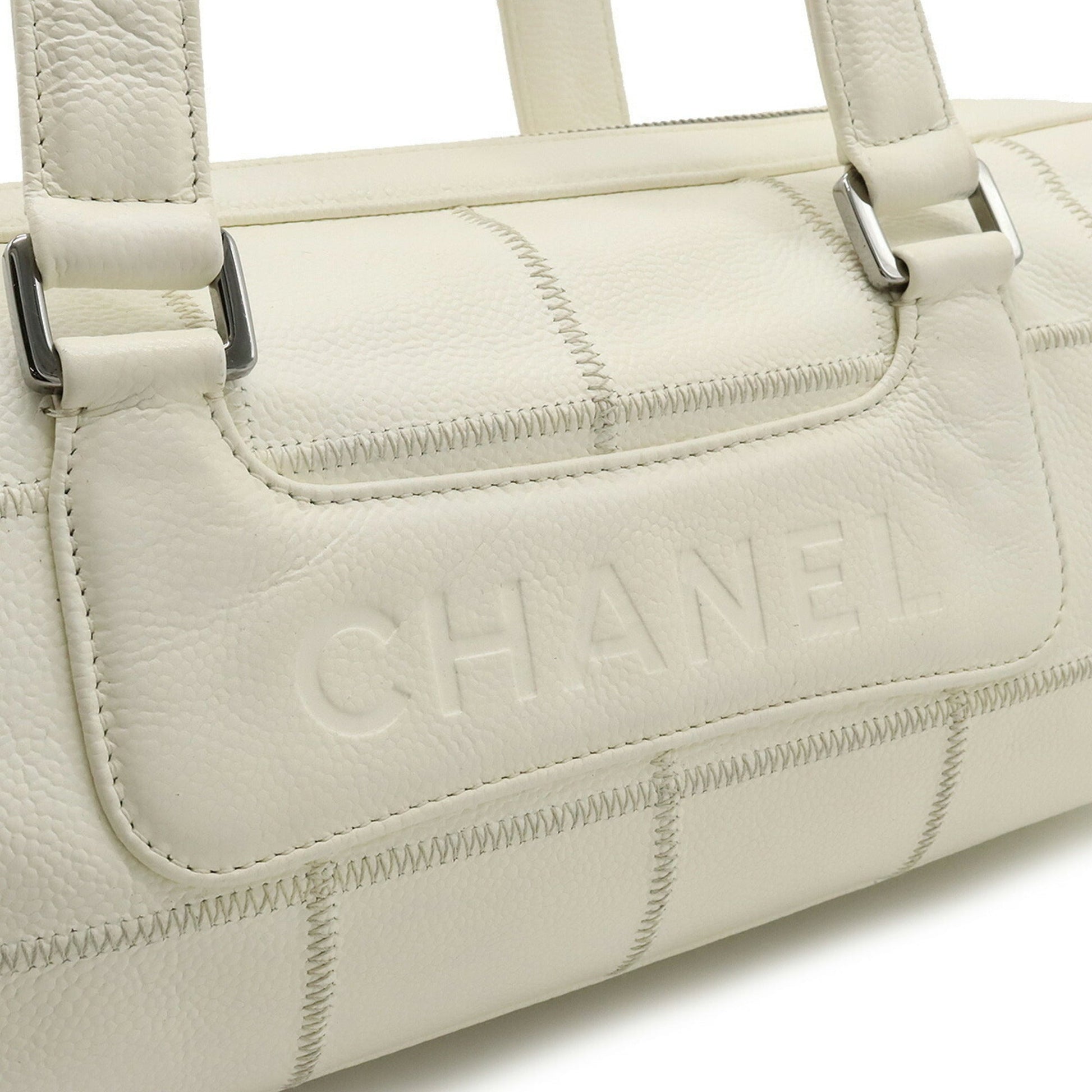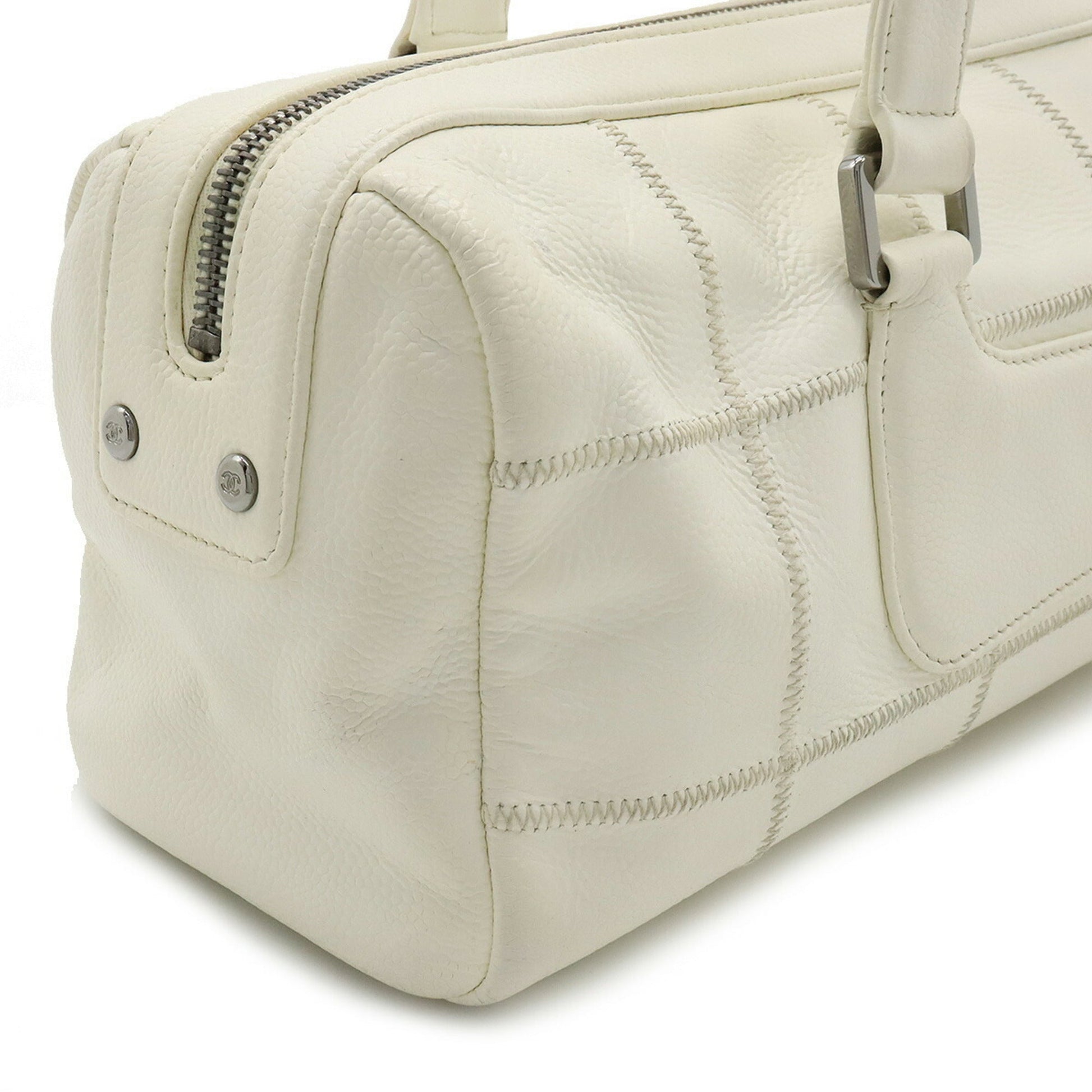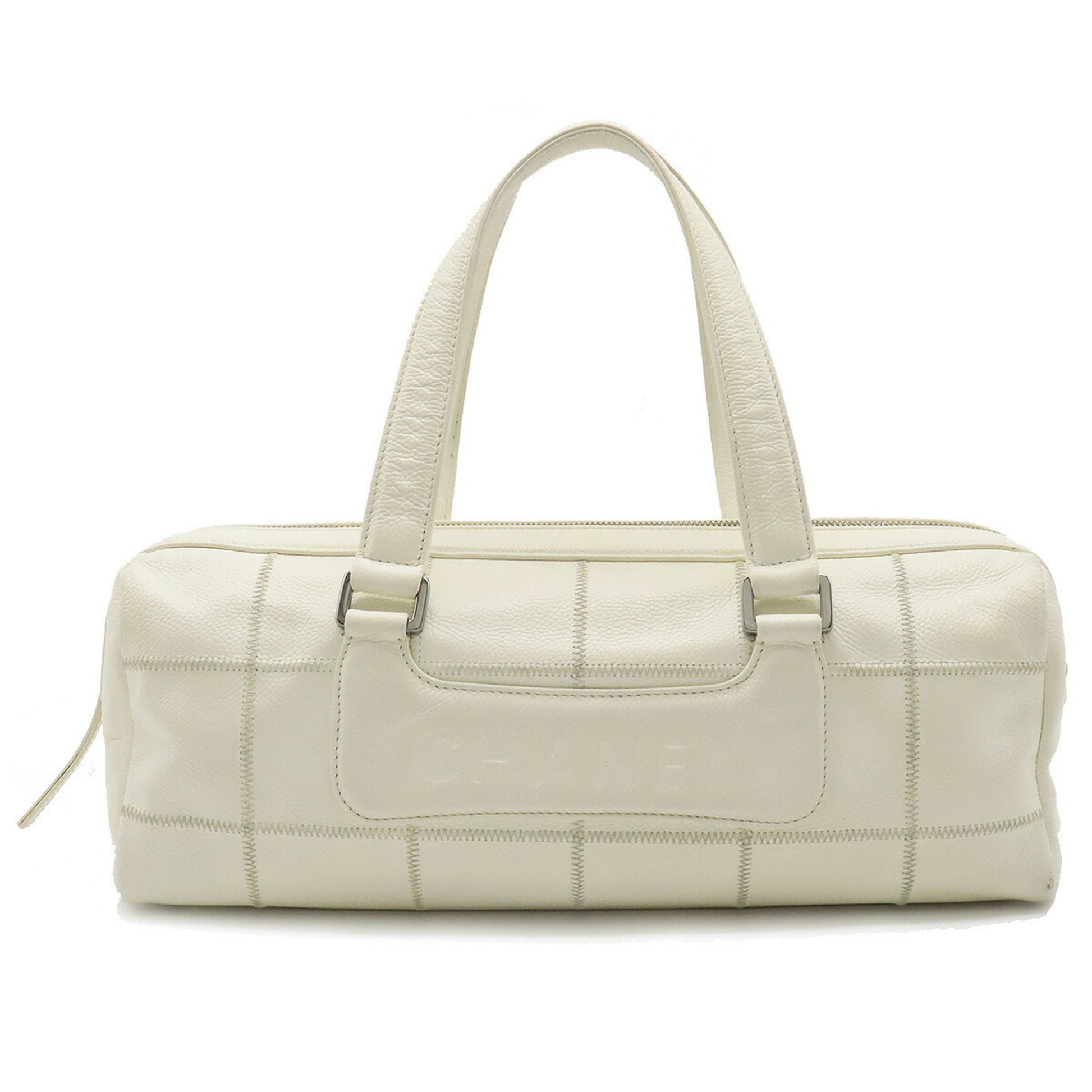 Chanel Chocolate Bar Coco Mark HandBag Boston Leather Ivory White