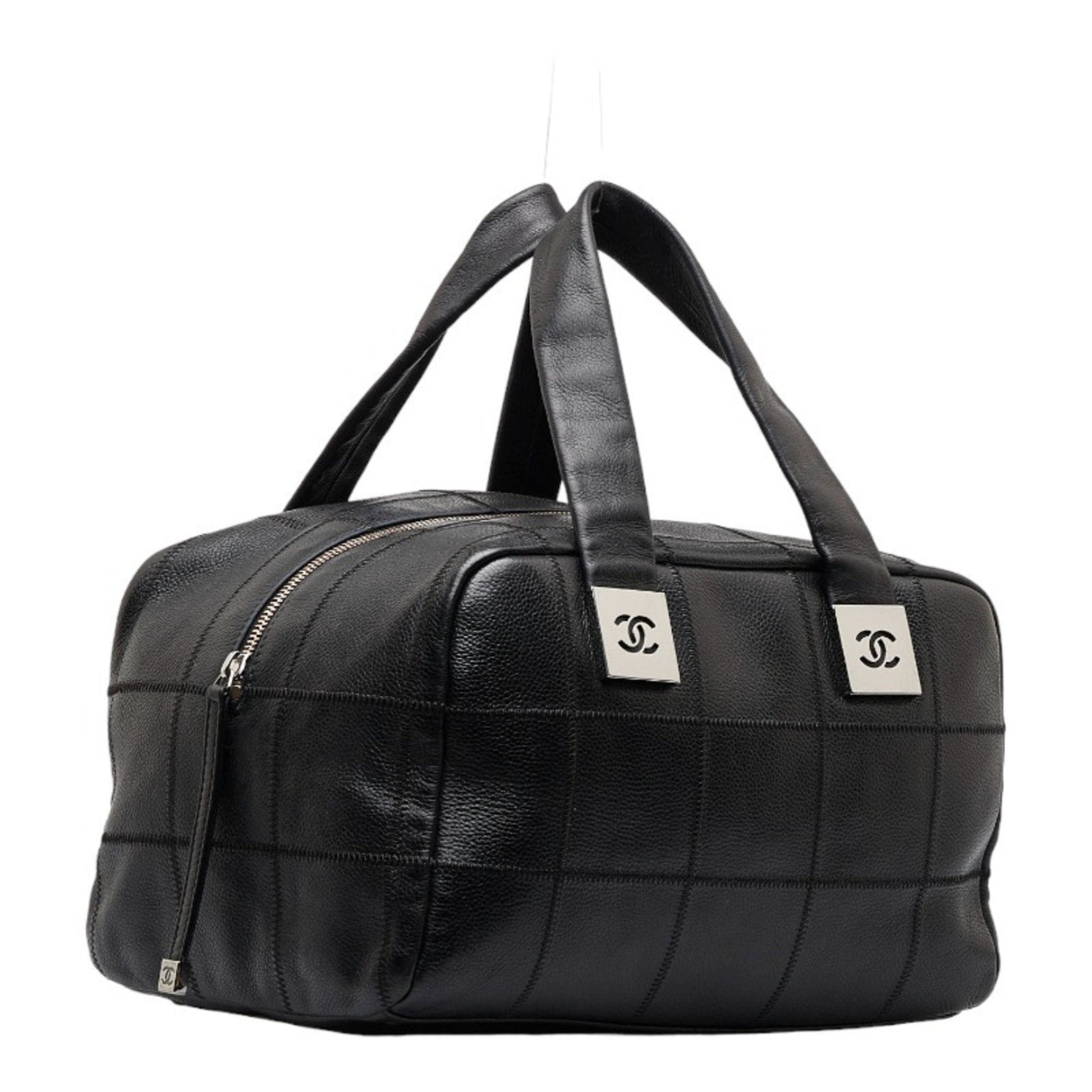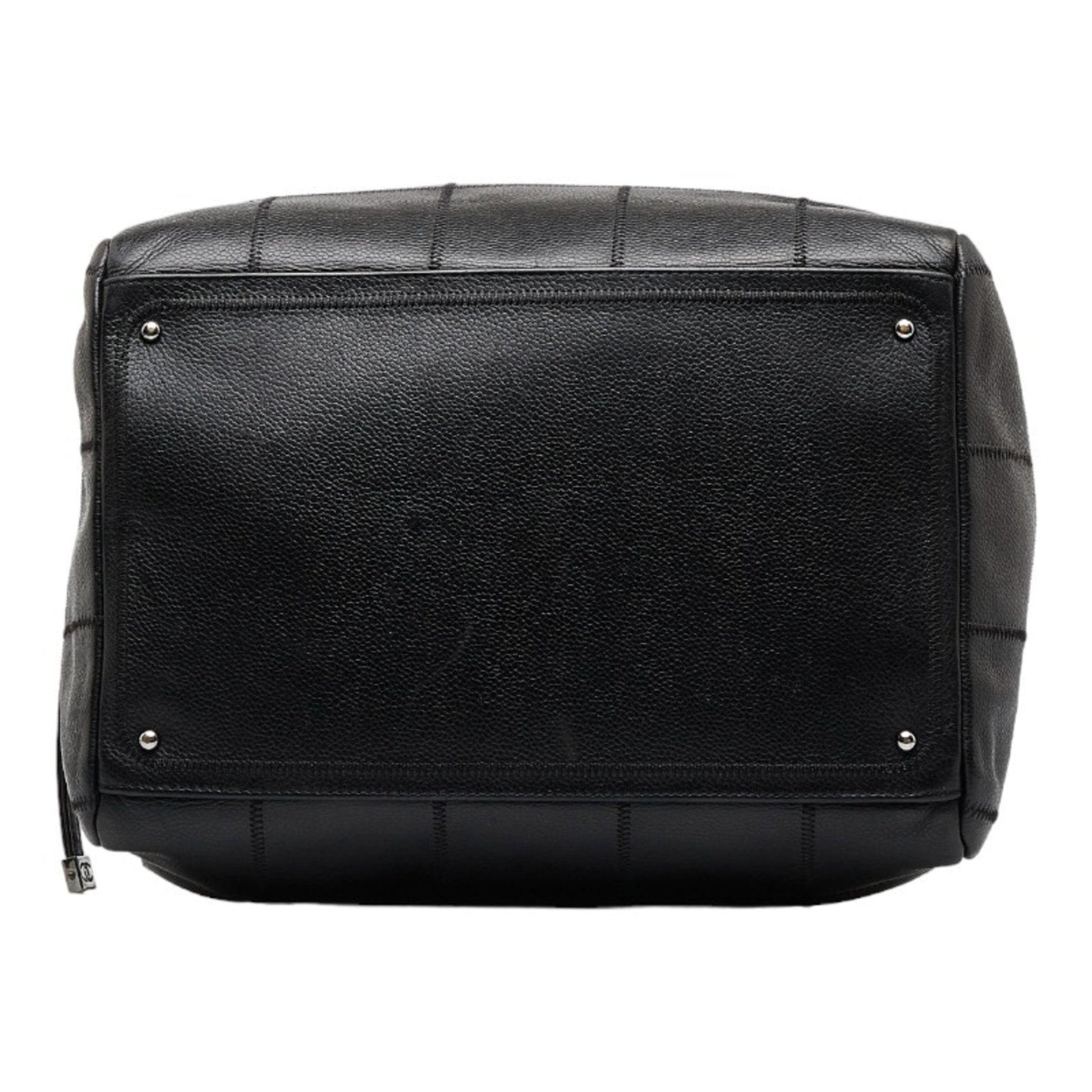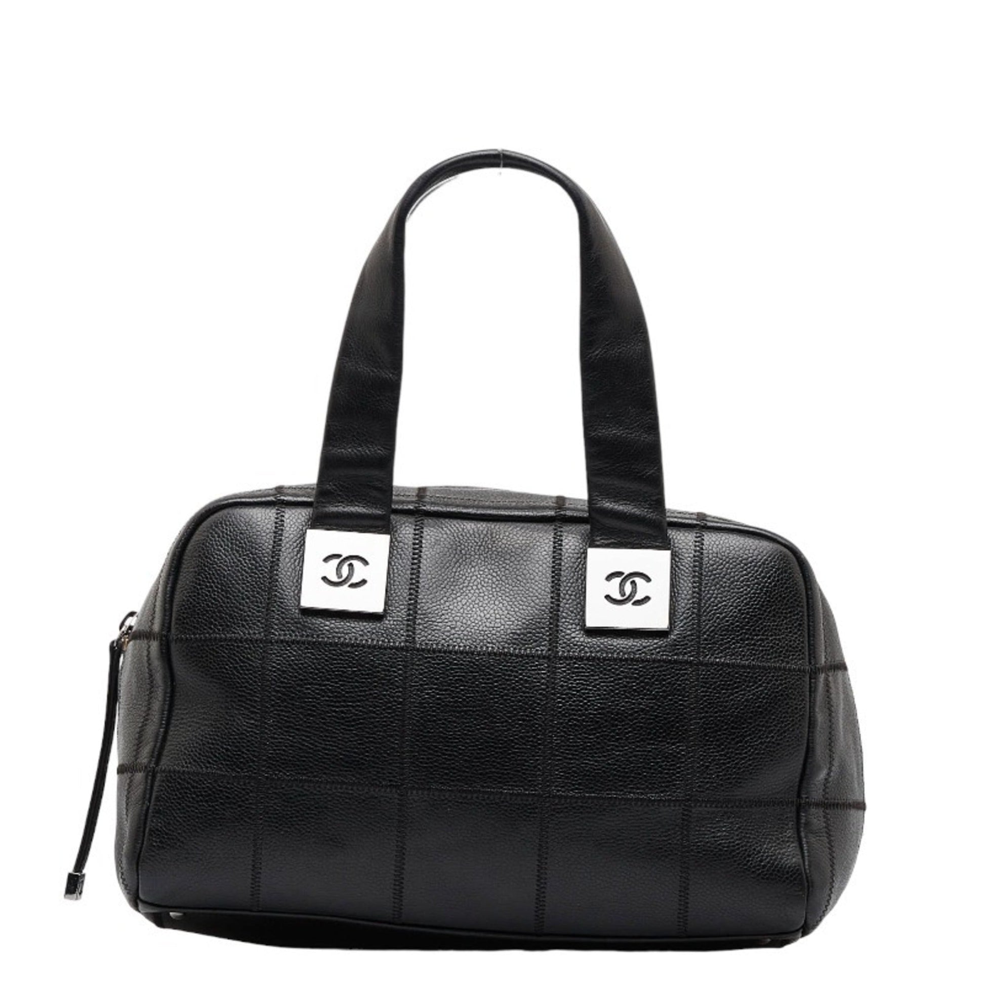 Chanel Chocolate Bar HandBag Boston Bag Black Caviar Skin Ladies