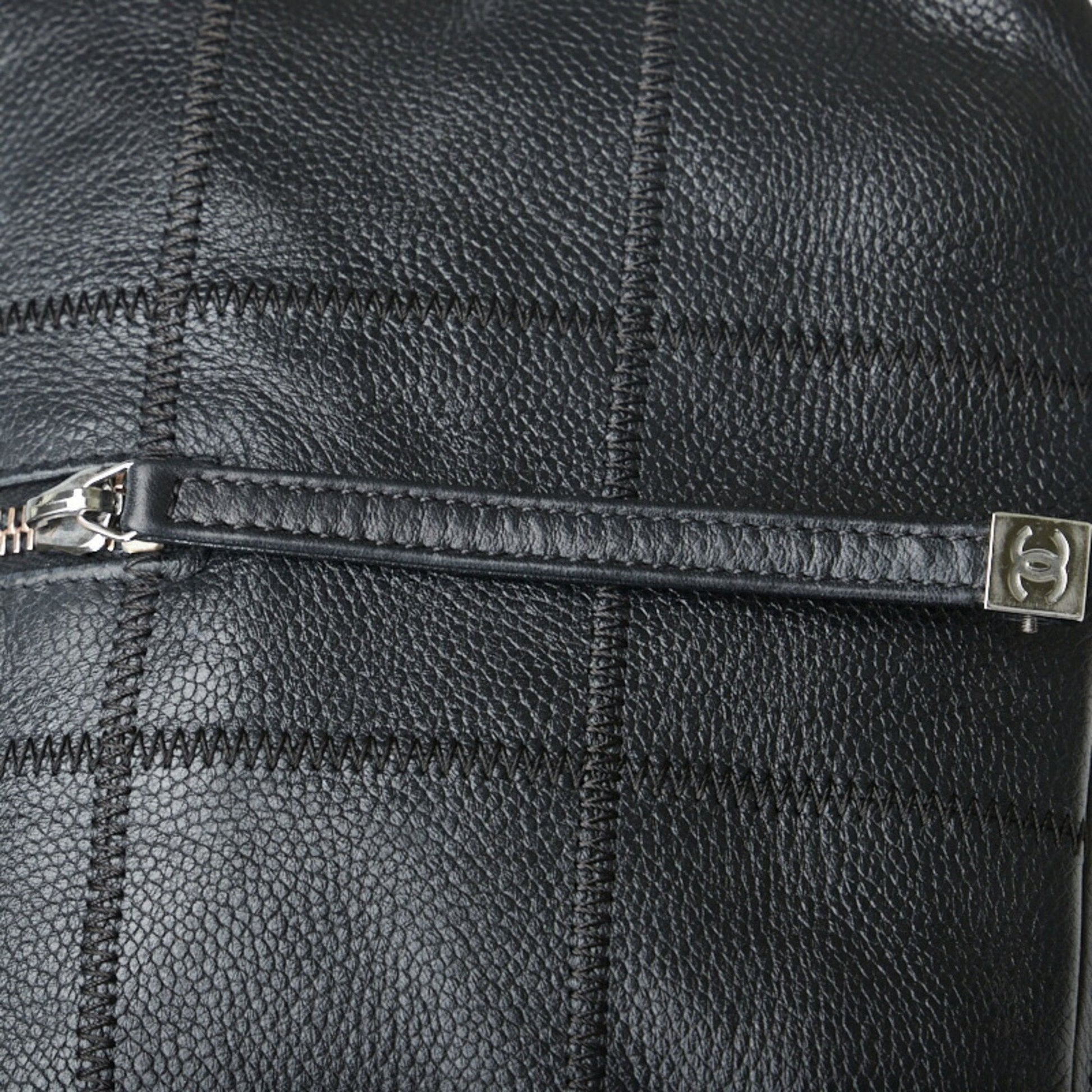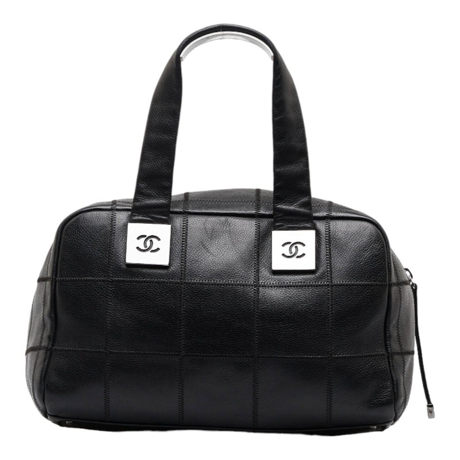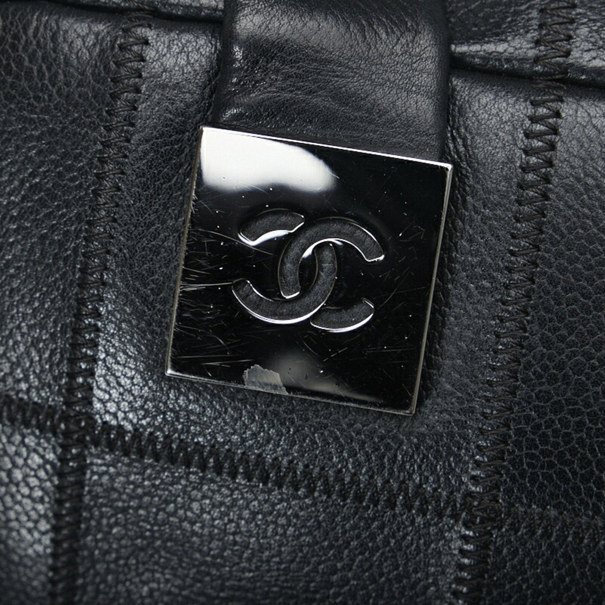 Chanel Chocolate Bar HandBag Boston Bag Black Caviar Skin Ladies