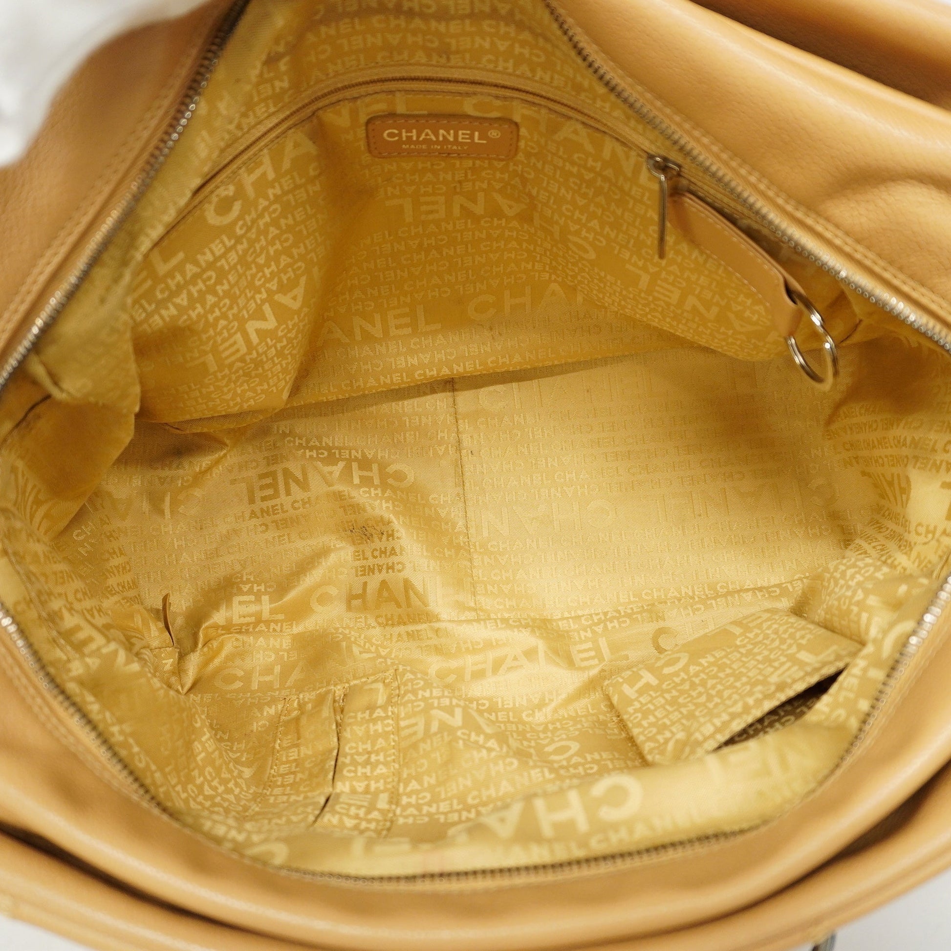 Chanel Chocolate Bar Shoulder Bag Women's Caviar Leather Beige