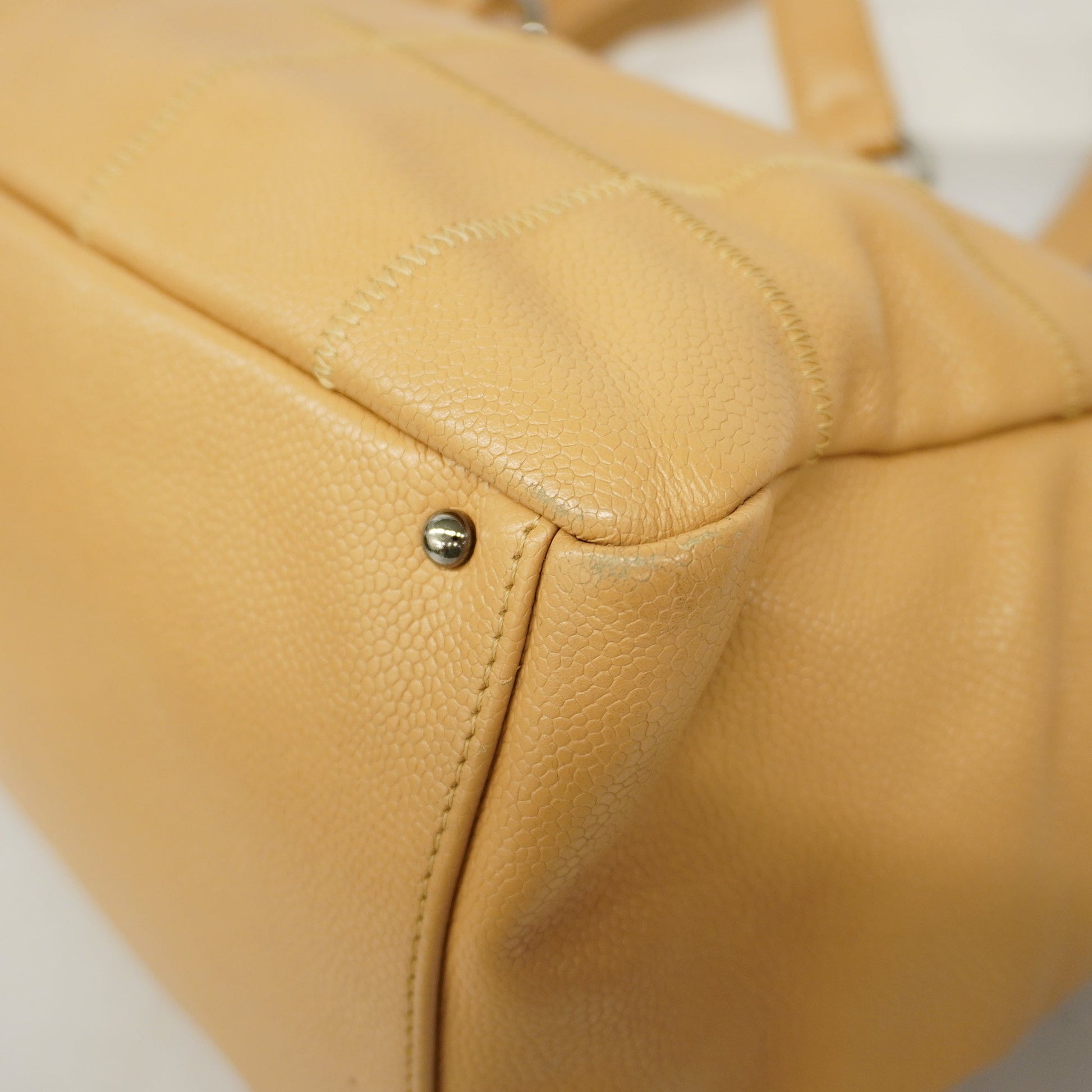 CHANEL Chocolate Bar Shoulder Bag Women's Caviar Leather Beige