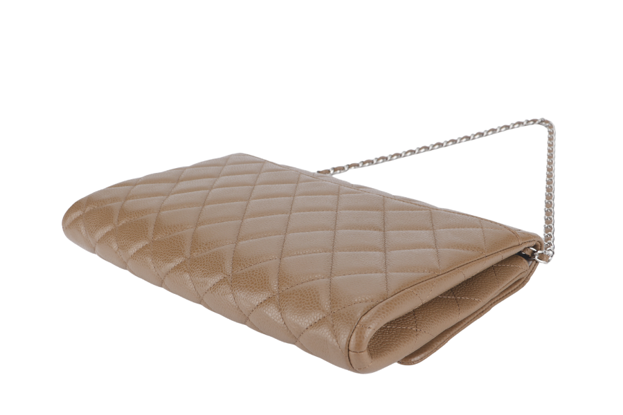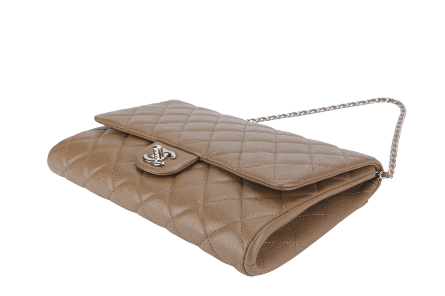 CHANEL CLASSIC CLUTCH (1846xxxx) WITH CHAIN BROWN CAVIAR SILVER HARDWARE NO AND NO DUST COVER