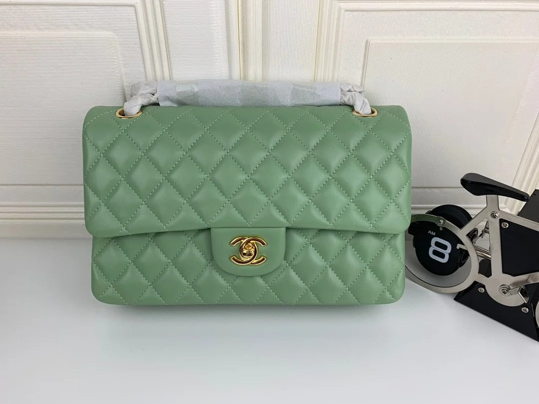 Chanel Classic Double Flap 25 Shoulder Bag Emerald Green