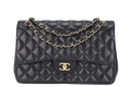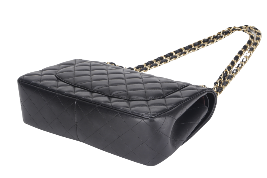 CHANEL CLASSIC DOUBLE FLAP JUMBO BLACK LAMBSKIN LEATHER GHW (1685xxxx), WITH AND DUST COVER