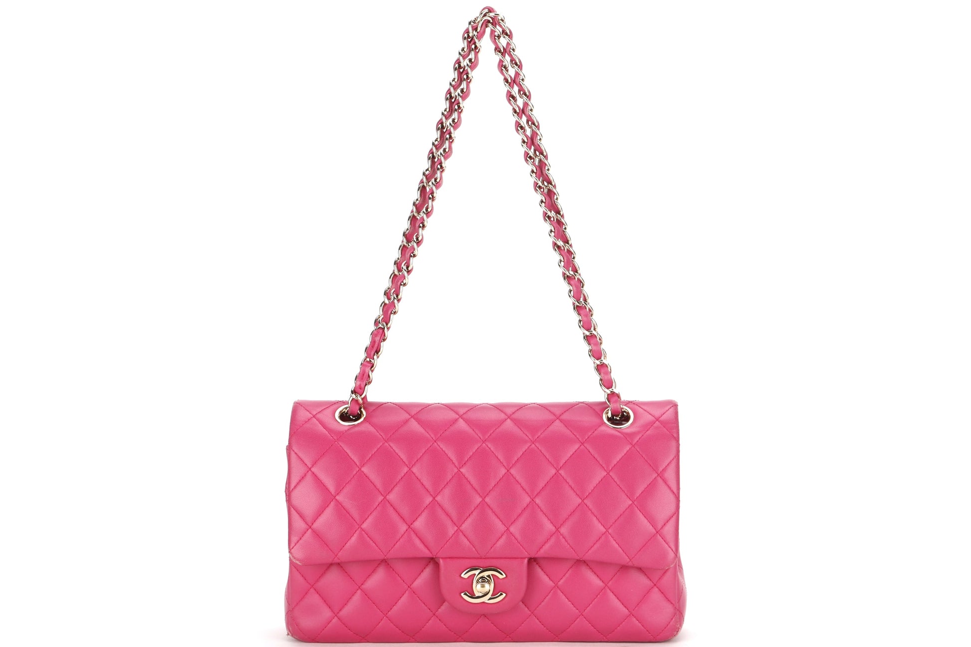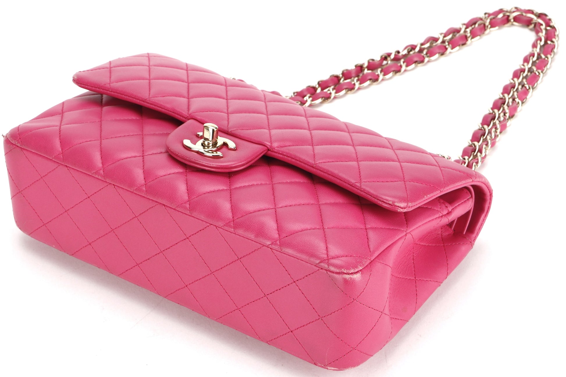 CHANEL CLASSIC DOUBLE FLAP (2214xxxx) MEDIUM PINK LAMBSKIN GOLD HARDWARE ,WITH , DUST COVER & BOX