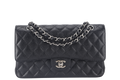 CHANEL CLASSIC FLAP (2618xxxx) MEDIUM BLACK CAVIAR SILVER HARDWARE NO WITH DUST COVER AND BOX