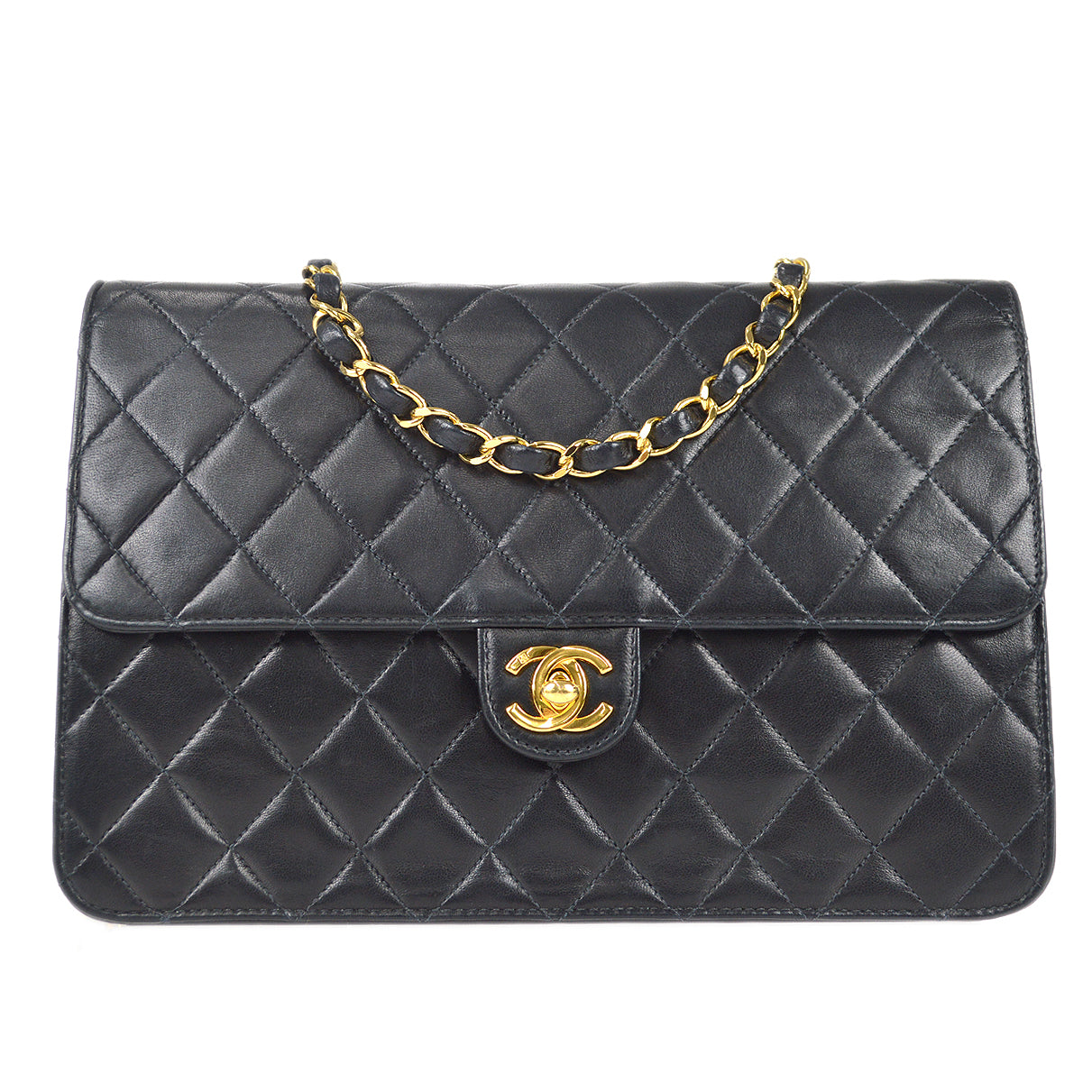 Chanel Classic Flap Chain Shoulder Bag Black Lambskin