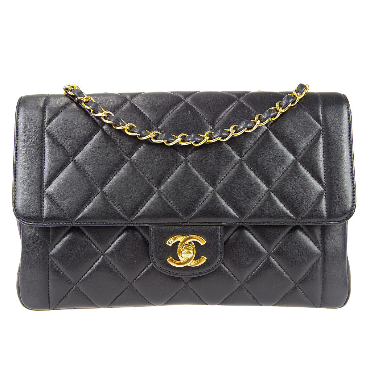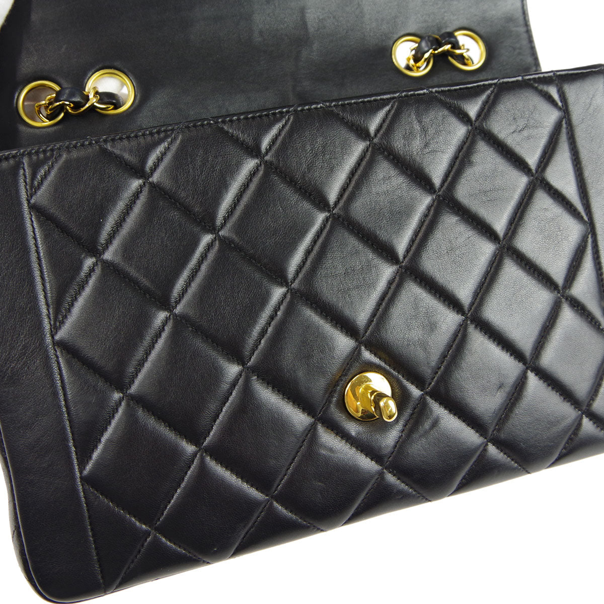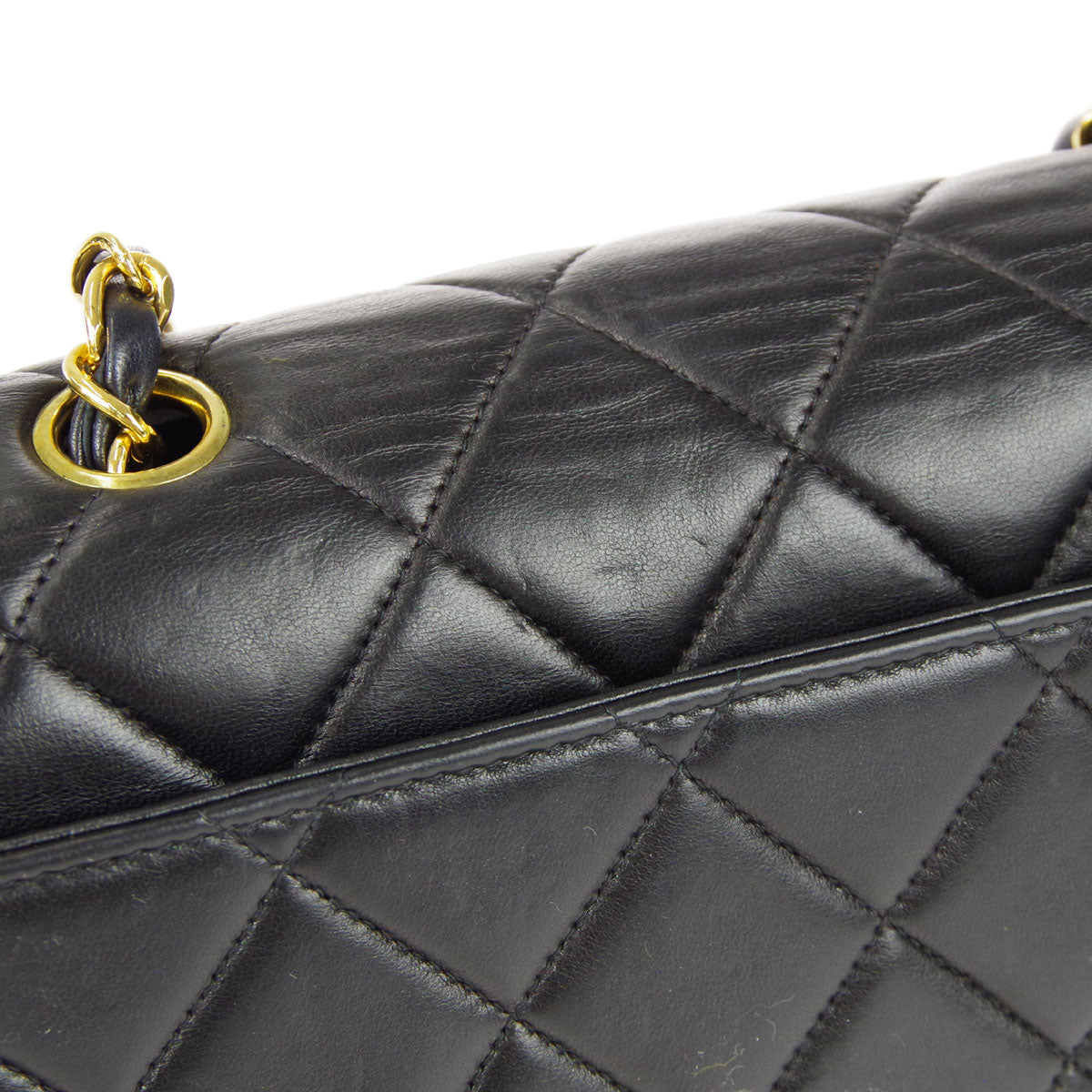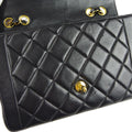 Chanel Classic Flap Double Chain Shoulder Bag Black Lambskin