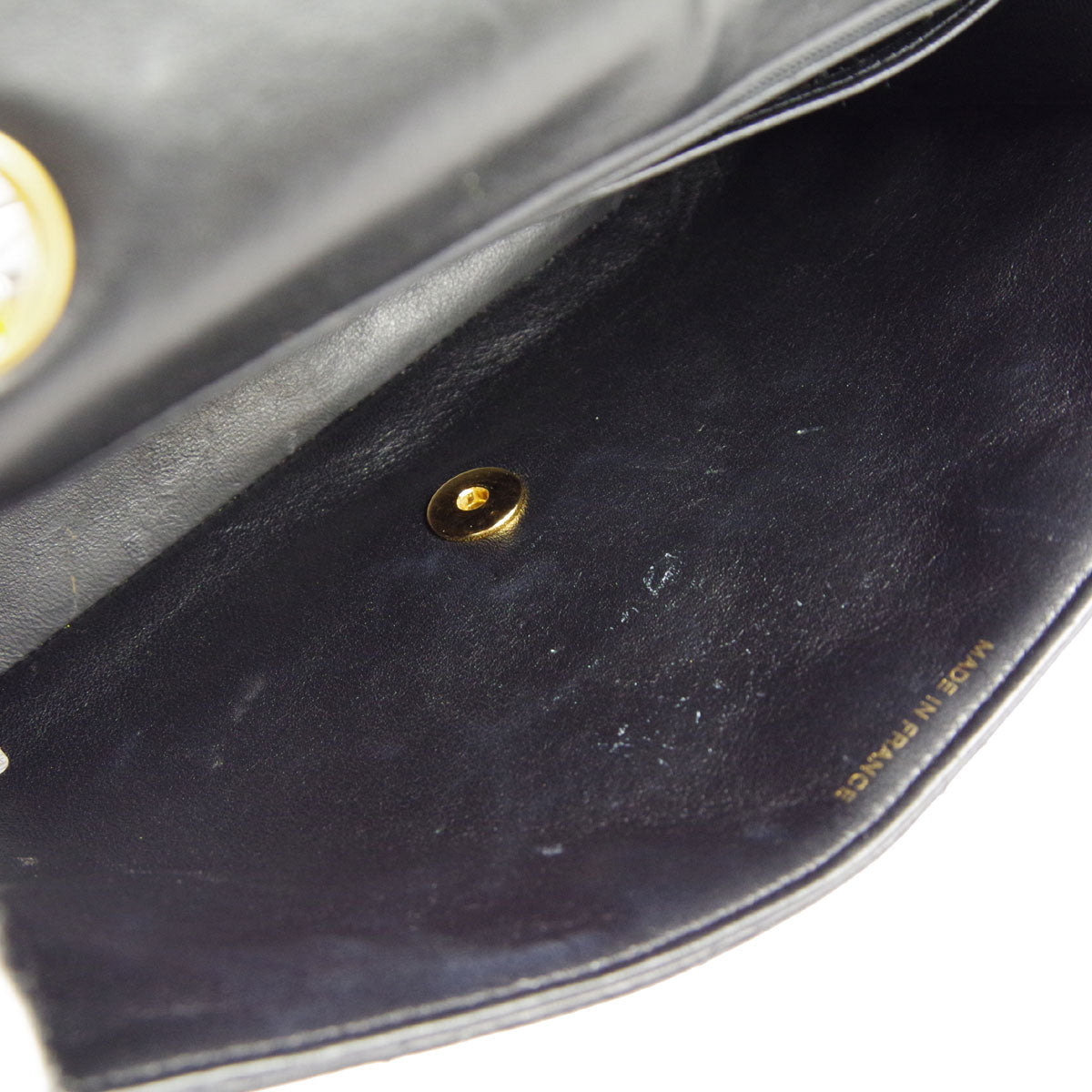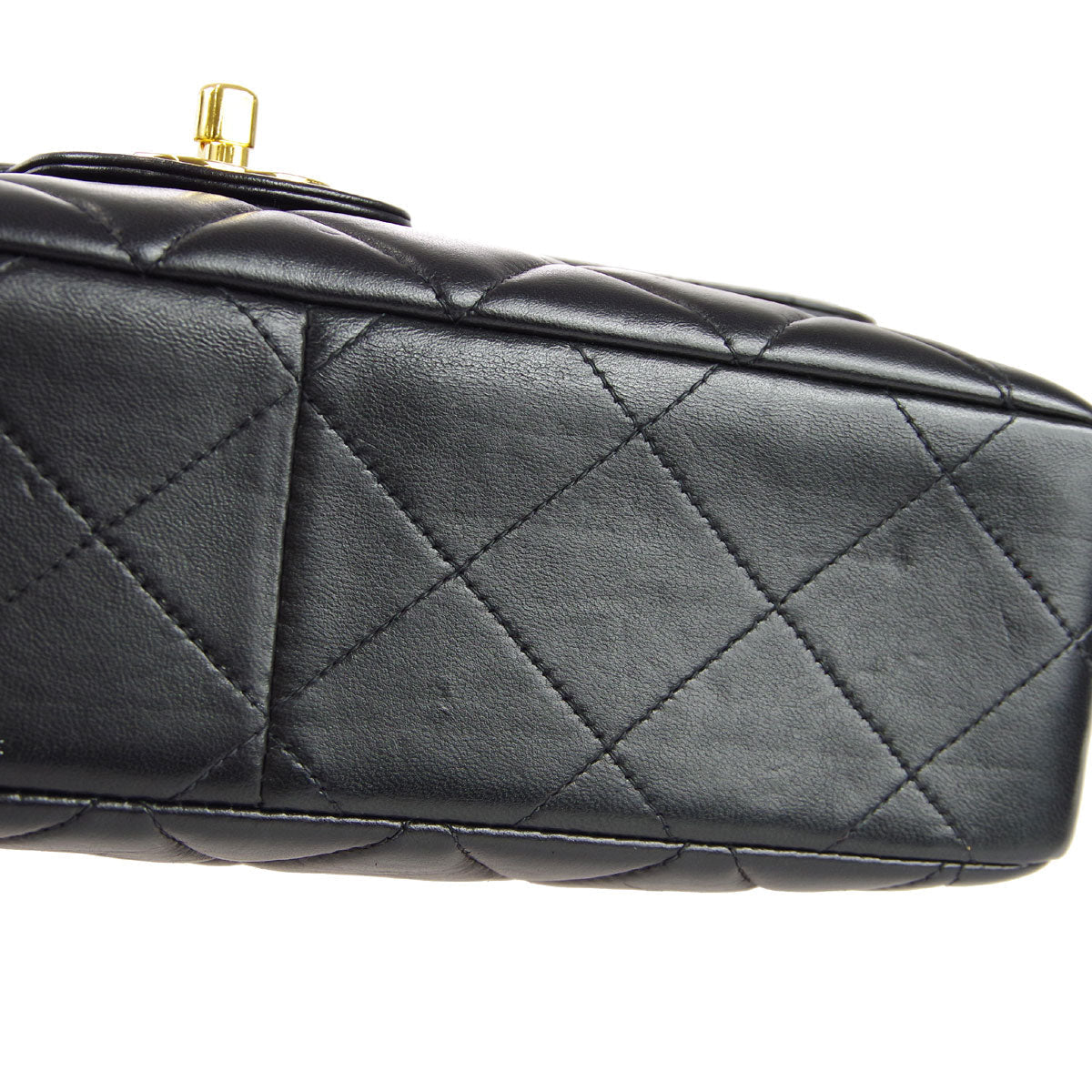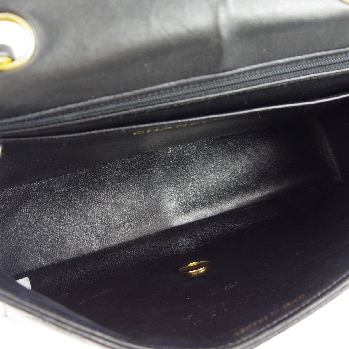 Chanel Classic Flap Double Chain Shoulder Bag Black Lambskin