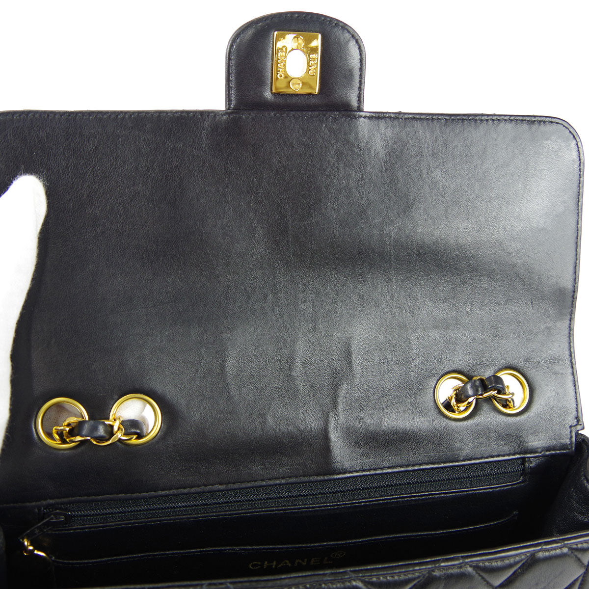 Chanel Classic Flap Double Chain Shoulder Bag Black Lambskin 67933
