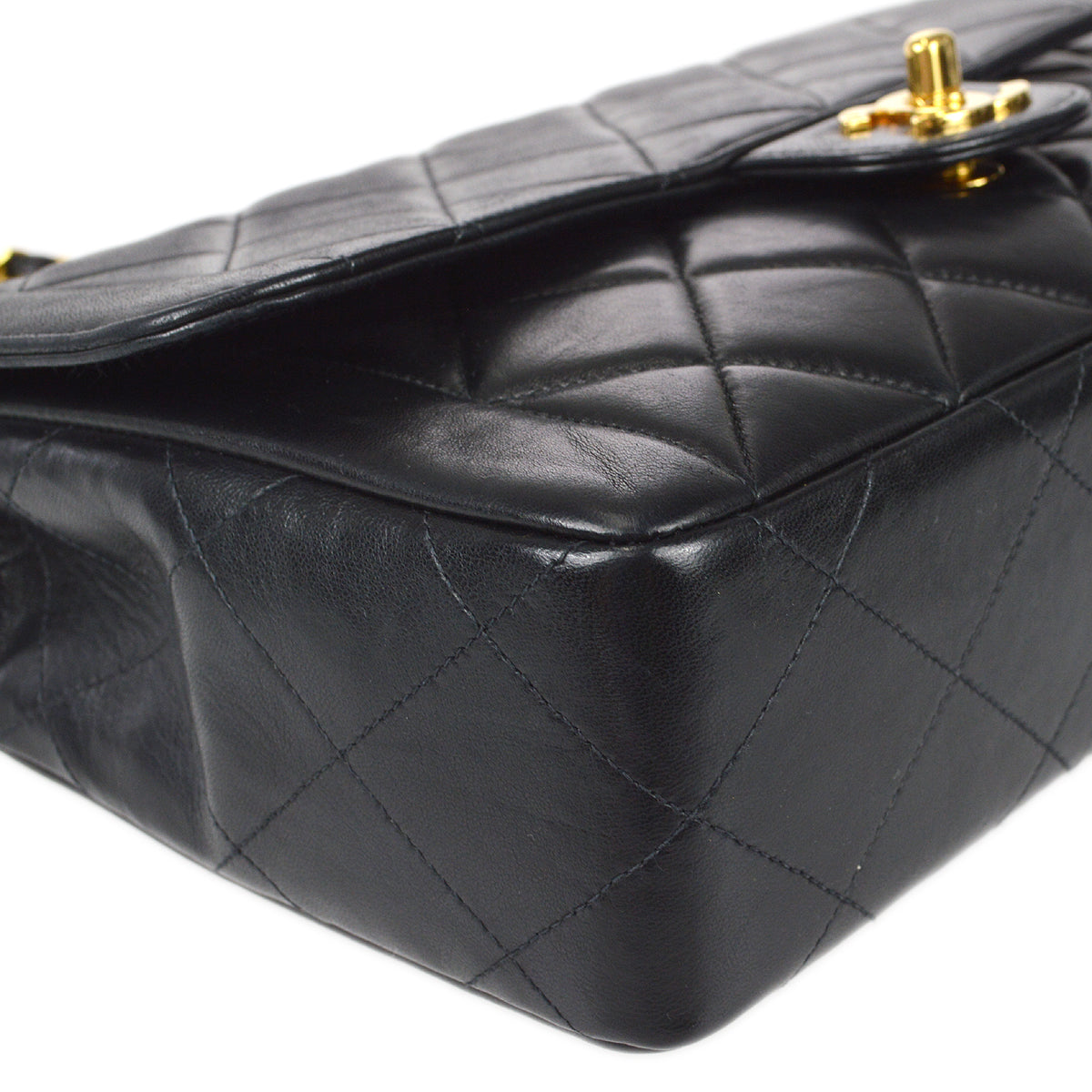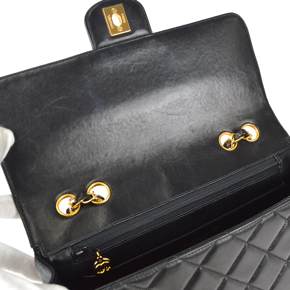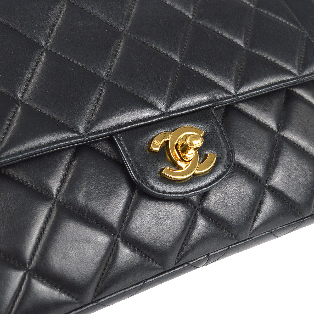 Chanel Classic Flap Double Chain Shoulder Bag Black Lambskin
