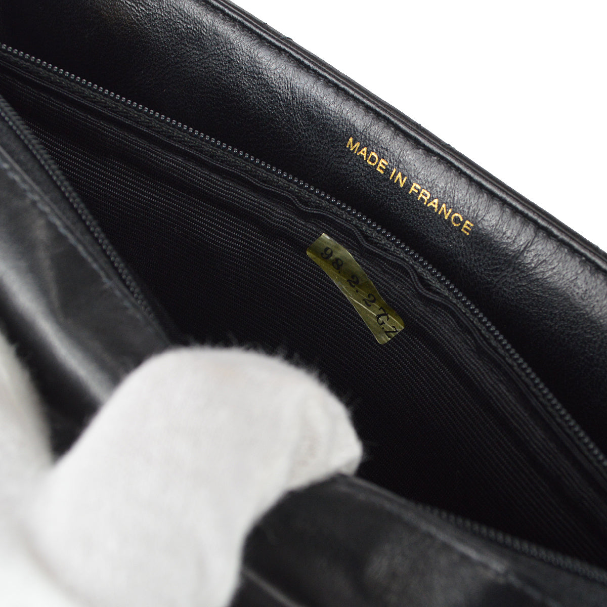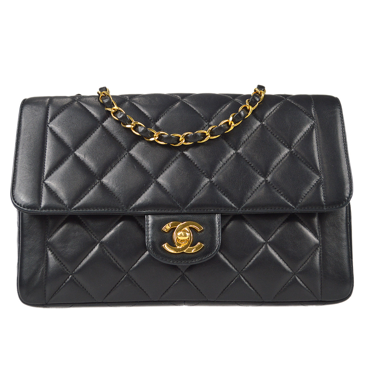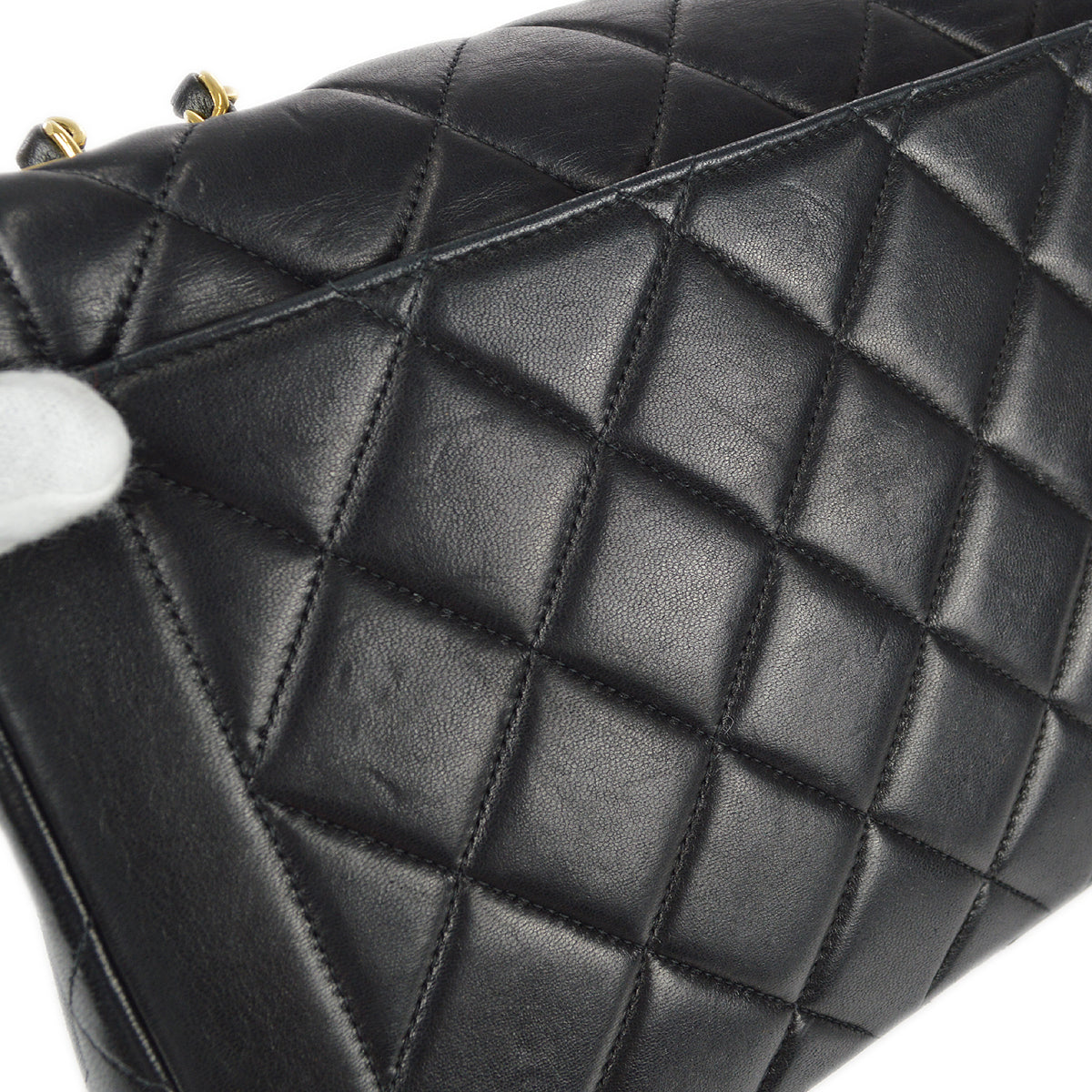 Chanel Classic Flap Double Chain Shoulder Bag Black Lambskin