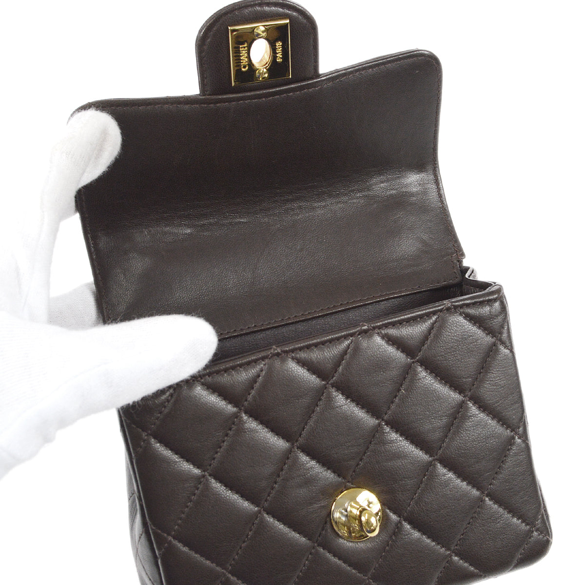 Chanel Classic Flap HandBag Micro Brown Lambskin 96861