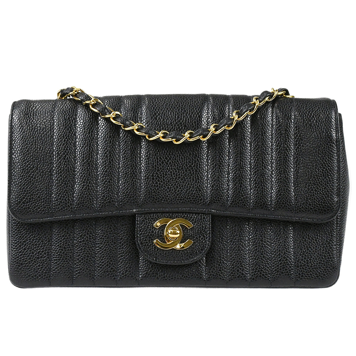 Chanel Classic Flap Mademoiselle Chain Shoulder Bag Black Caviar 78719