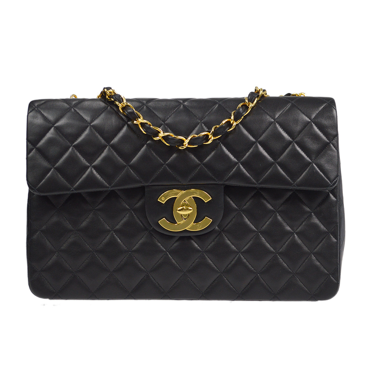 Chanel Classic Flap Maxi Chain Shoulder Bag Black Lambskin 87293