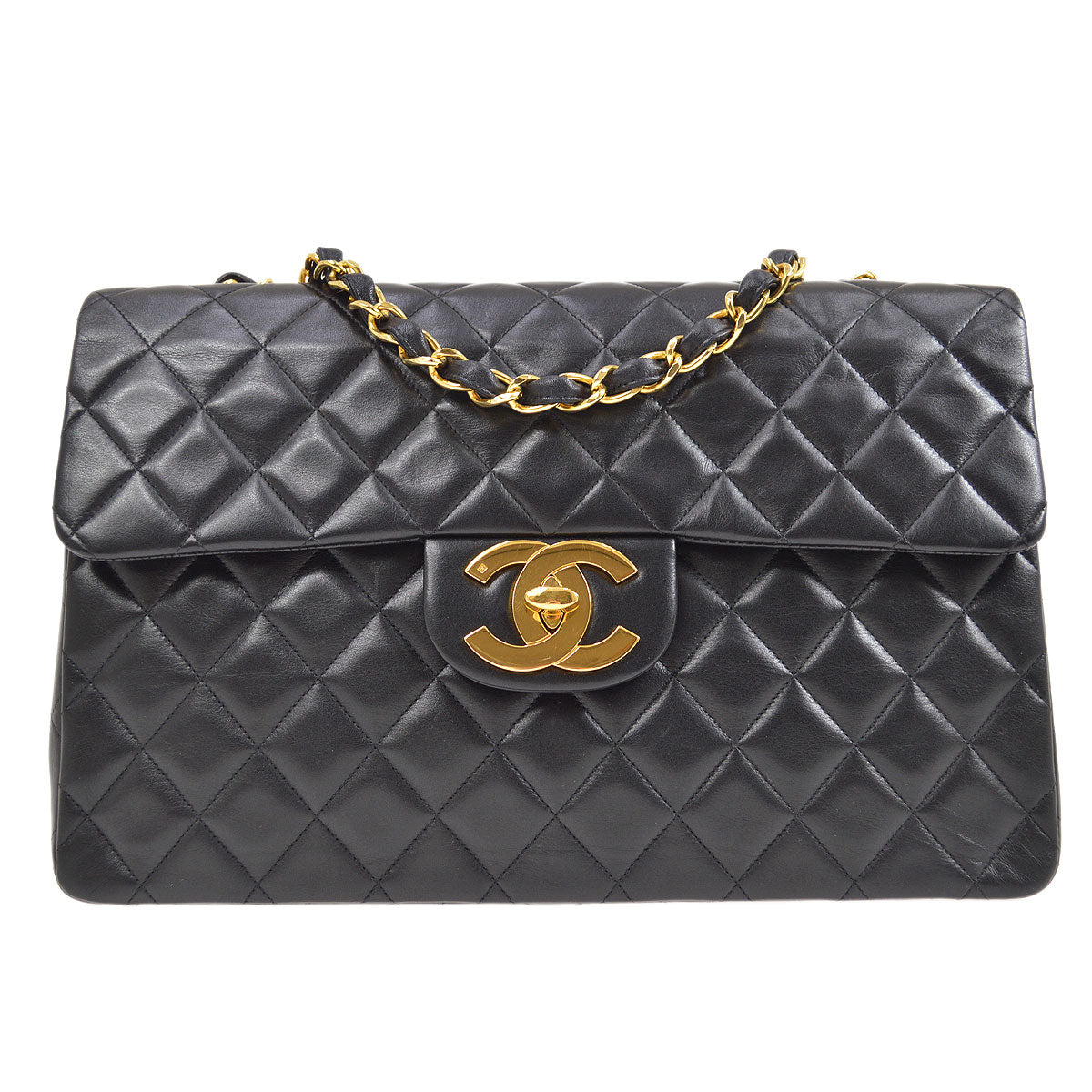 Chanel Classic Flap Maxi Chain Shoulder Bag Black Lambskin 94639