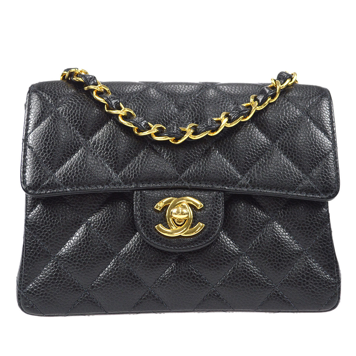 Chanel Classic Flap Mini Square Chain Shoulder Bag Black Caviar 58067