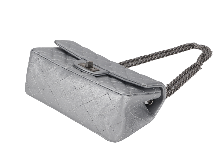 CHANEL CLASSIC FLAP REISSUE 2.55 MINI SILVER CALFSKIN SHW AUL4xxxx (MICROCHIP) WITH DUST COVER AND BOX