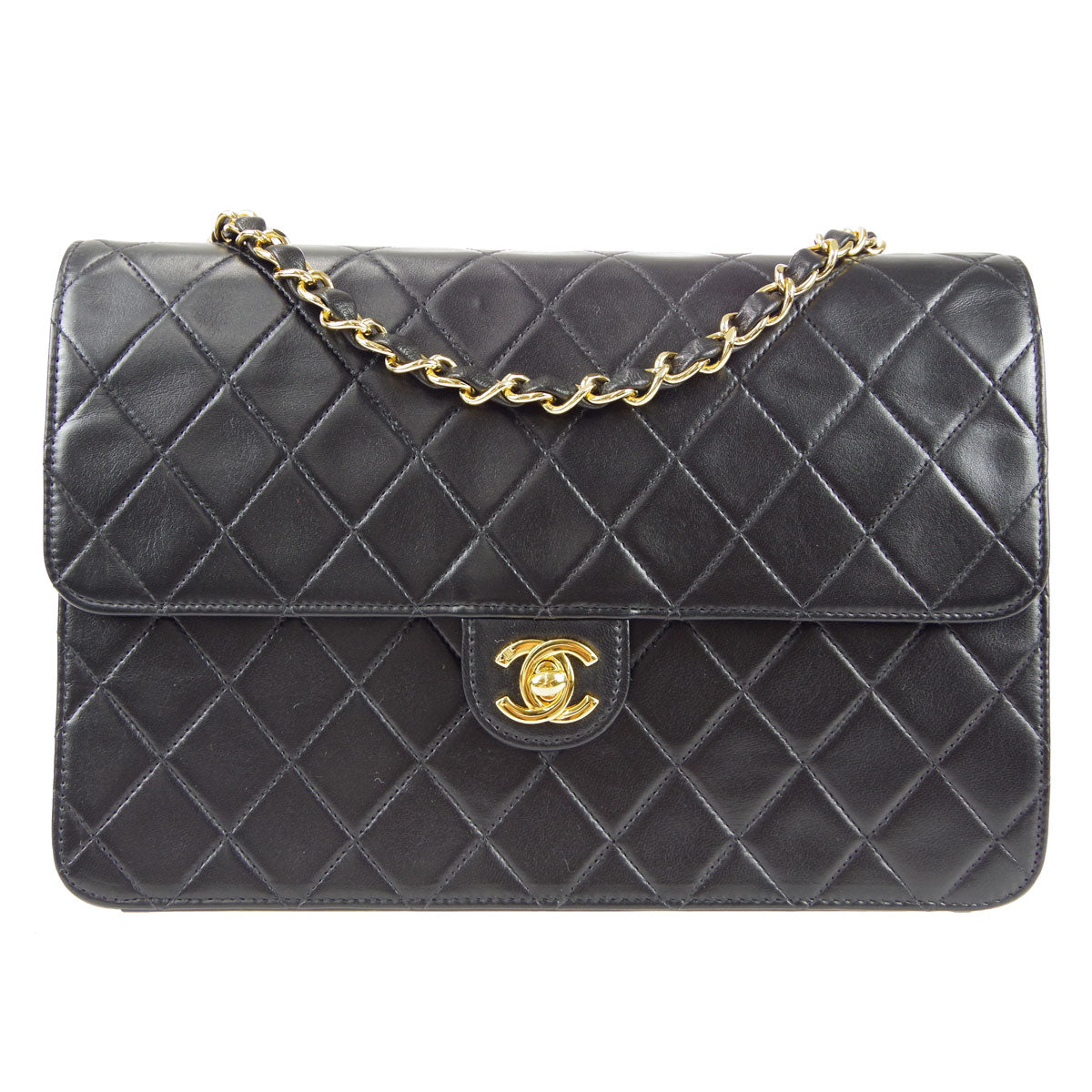 Chanel Classic Flap Single Chain Shoulder Bag Black Lambskin